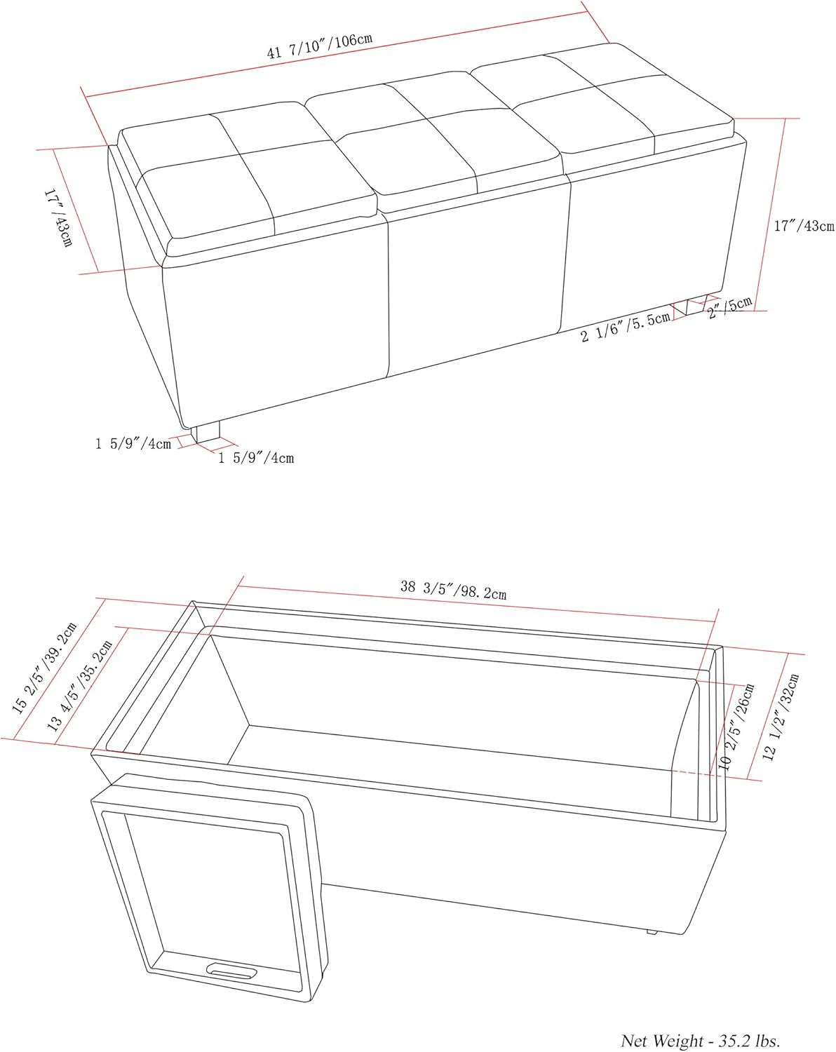 - Product Dimensions : 17"D x 41.7"W x 16.93"H