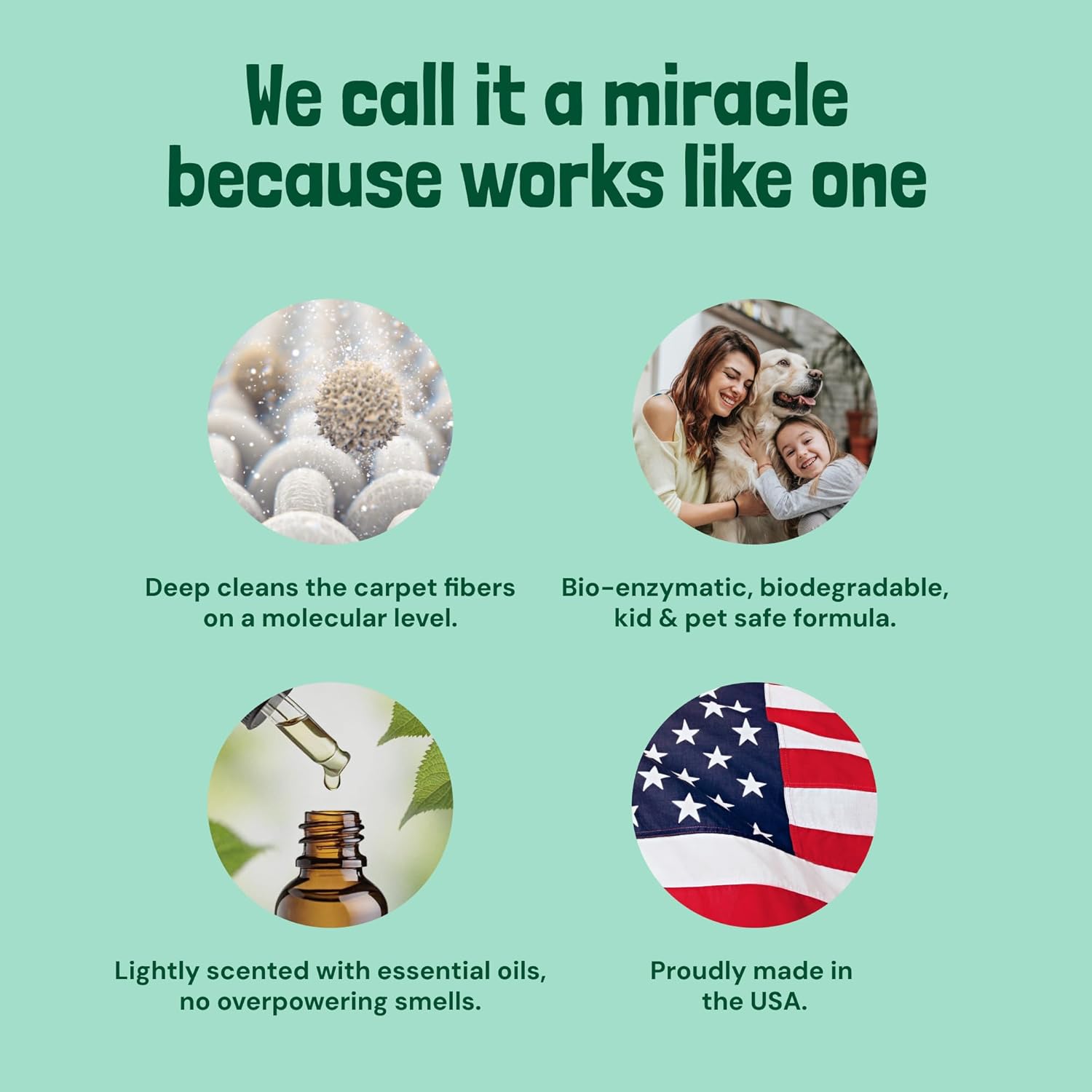- Pet Friendly And Safe: Our carpet shampoo solution is made with your family and pets in mind. It's biodegradable and certified cruelty-free, using clean ingredients with essential oils. This pet carpet cleaner solution works in all home environments and is safe for everyone