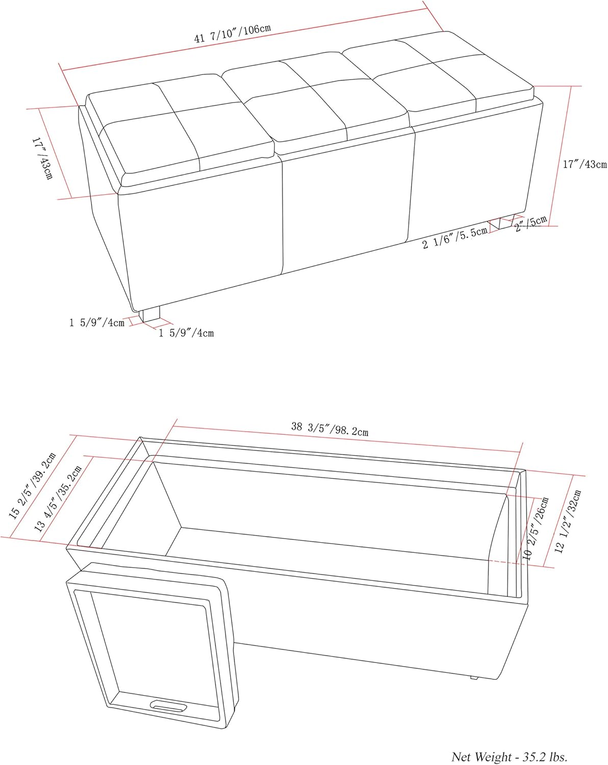 - Product Dimensions : 17"D x 41.7"W x 17"H