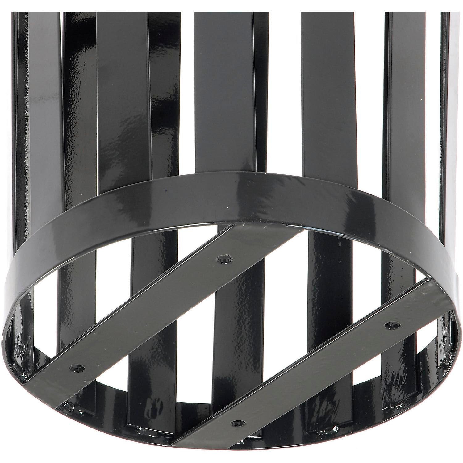 Global Industrial 24 Gallon Heavy-Duty Outdoor Metal Slatted Round Trash Receptacle with Rain Bonnet Lid, Powder Coat Finish, 23" Diameter x 41-3/4"H, Black