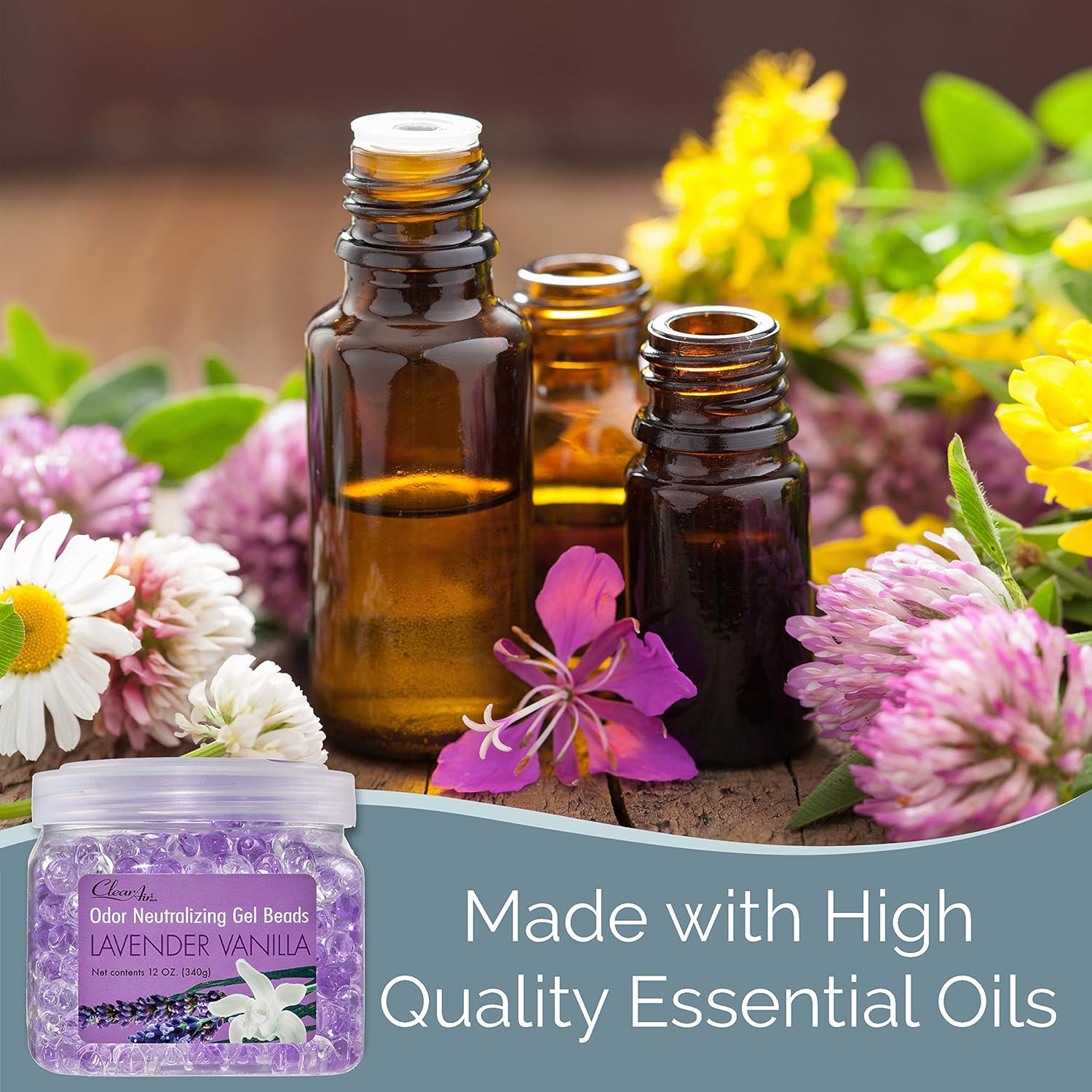 - Made with Essential Oils - Each Odor Eliminator Gel Bead contains 12 Ounces of product. The products are made with plant derived ingredients and formulated with a blend of essential oil based fragrances which adds a distinct and unforgettable aroma to any area you place and use the jar.