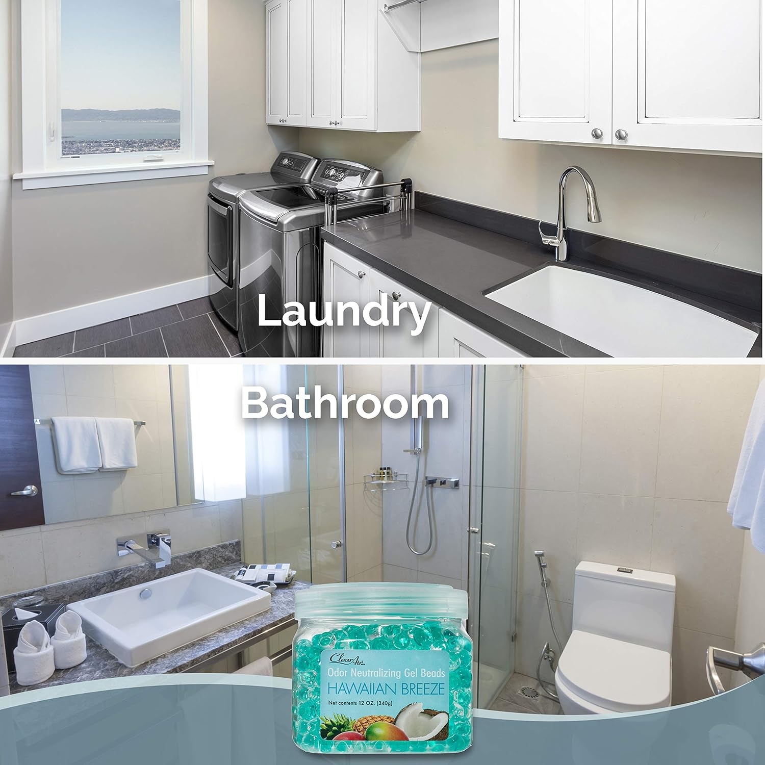 Clear Air Odor Eliminator Gel Beads - 12 oz, Pack of 2 - Air Freshener Made with Essential Oils - Eliminates Odors in Bathrooms, Cars, Boats, RVs & Pet Areas - Hawaiian Breeze Scent