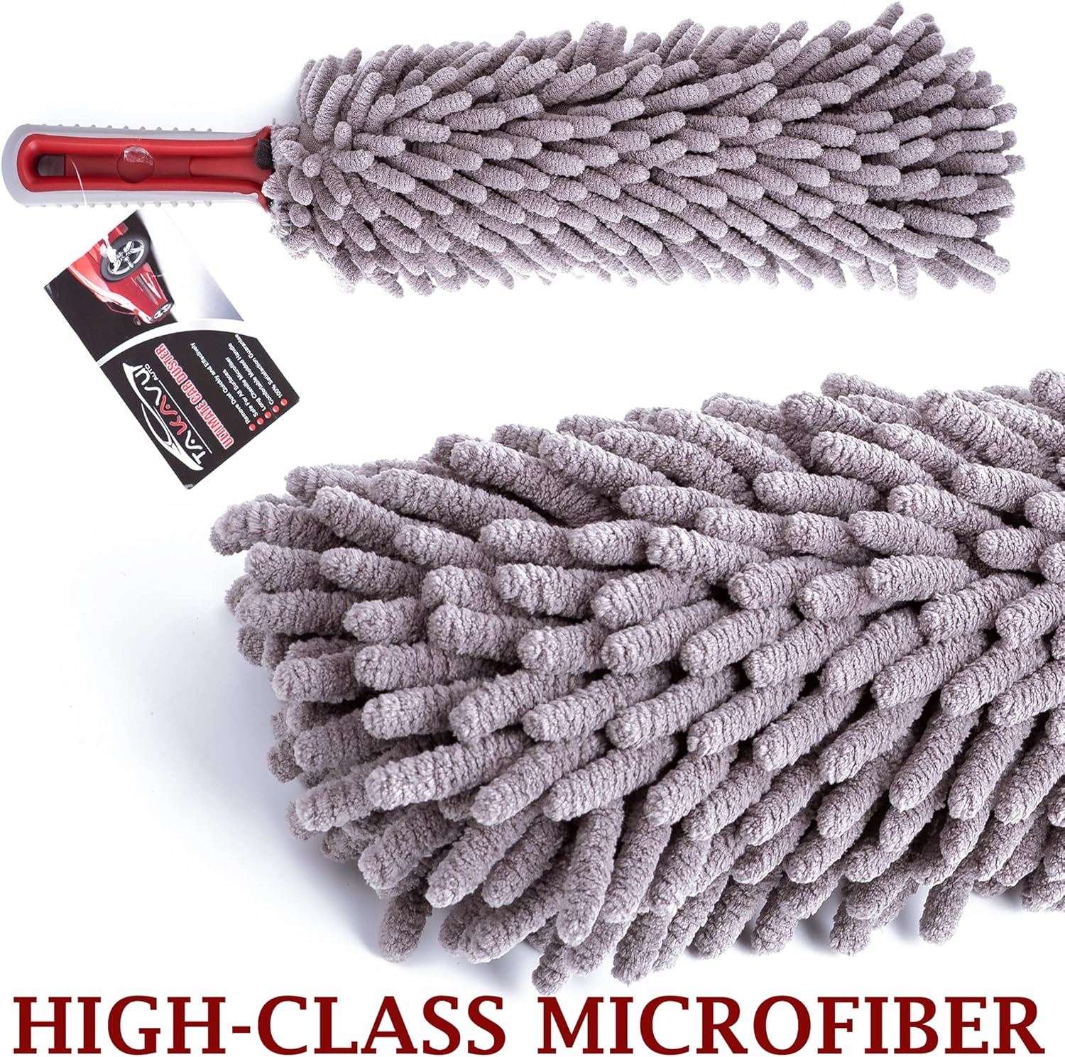 - One Sweep And You're Done: Our microfiber interior car duster effortlessly picks up dirt, dust, and pollen in just one sweep! The gray microfiber effectively removes debris from your car without leaving behind annoying lint, making it the perfect tool for professional interior detailing in cars, trucks, SUVs, and RVs.