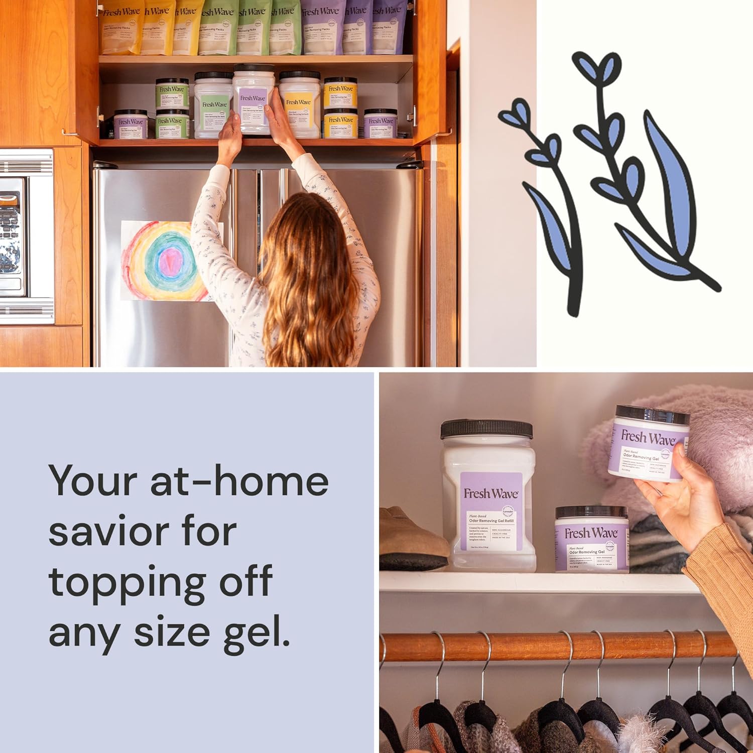 - Fresh Wave Gels get rid of everyday odors and replace them with clean, fresh air. Refills make it easy to refresh whenever you need it.
