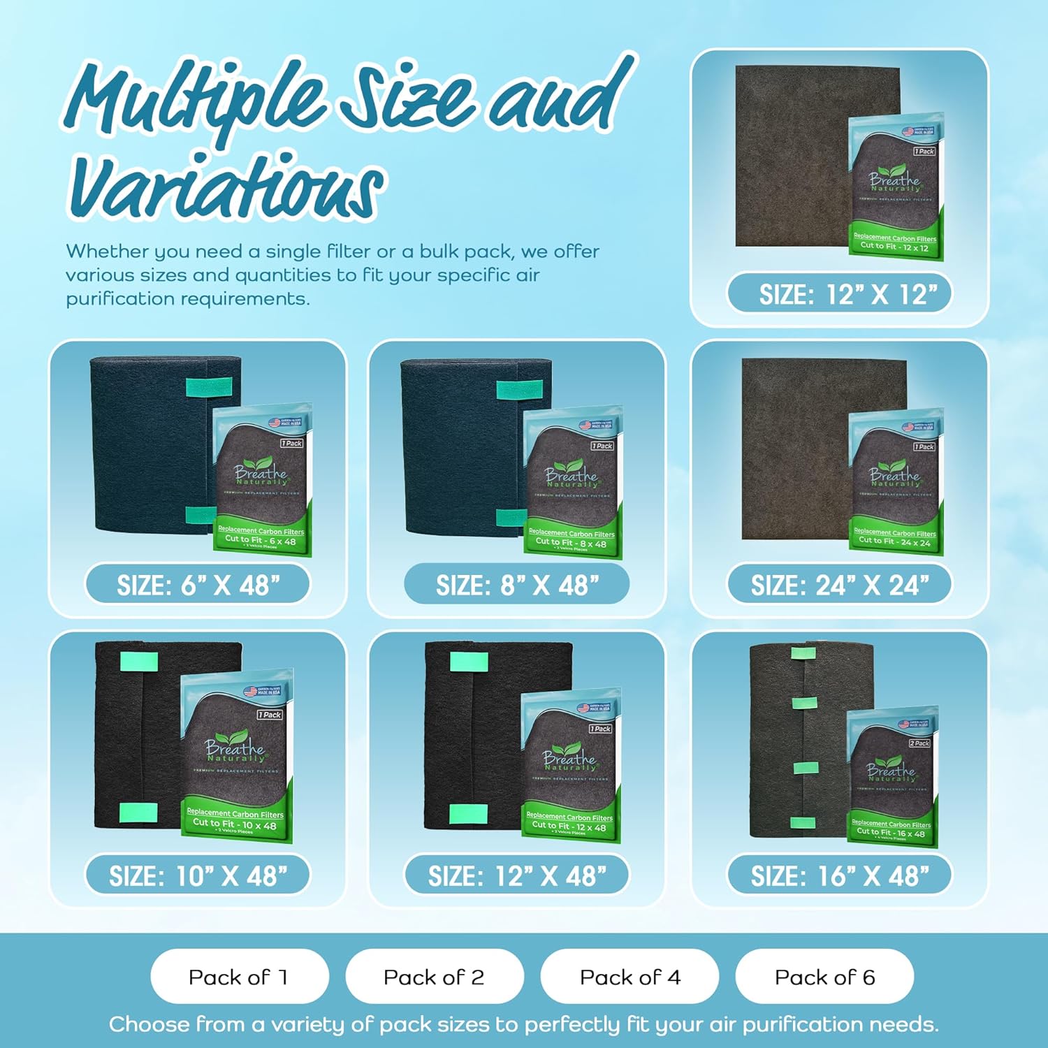 - MULTIPLE SIZE AND PACK: Available in various sizes, these filters come in packs of 1, 2, 4, or 6, catering to your specific needs. Whether you need a single or multiple filters, these options provide convenience and value, allowing you to maintain optimal air quality in your home with regular filter replacements tailored to your needs.