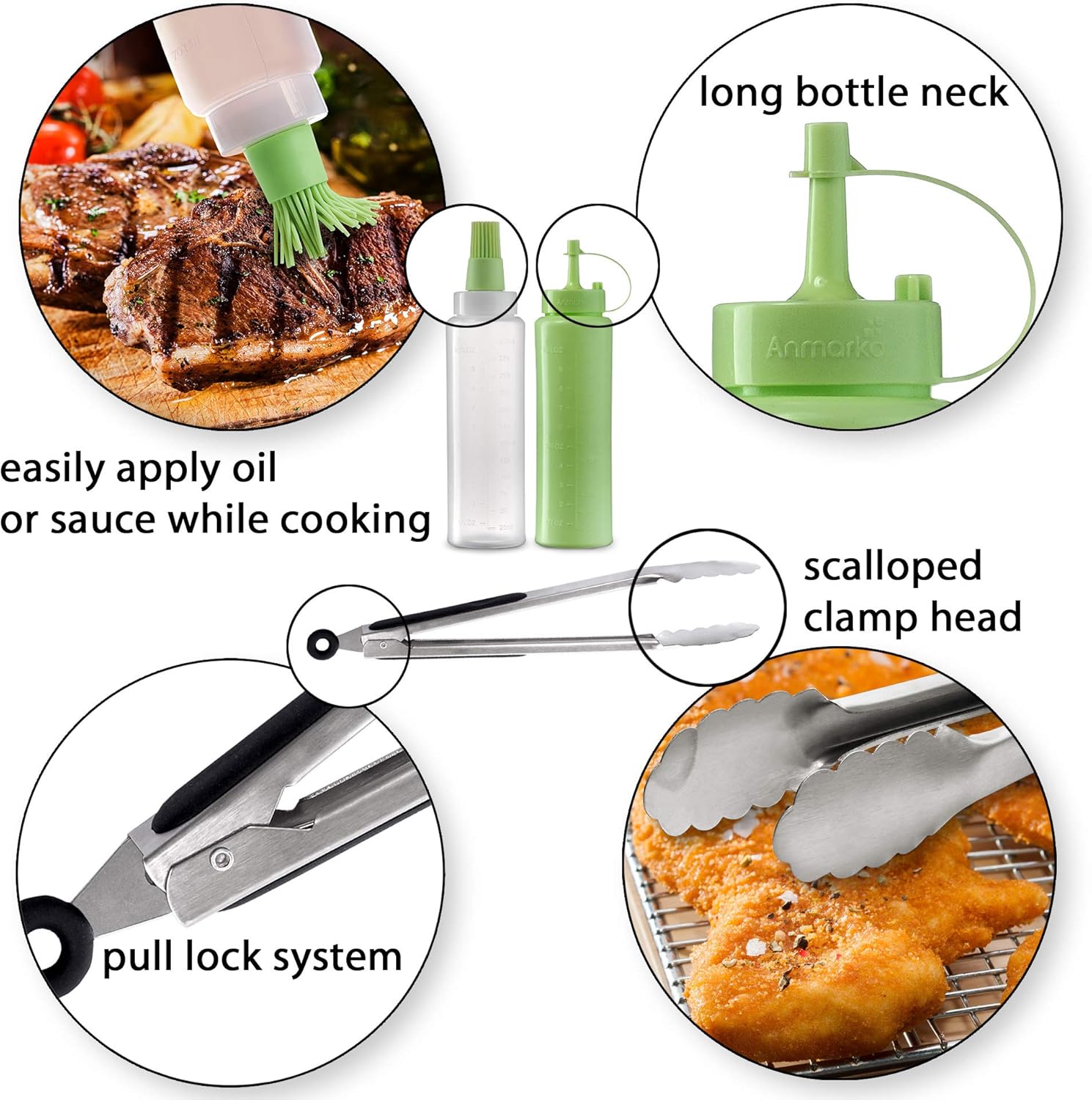- ✅ PROFESSIONAL STAINLESS STEEL SPATULA SET - includes 1 x cooking spatula turner, 1 x grill spatula, 1 x hamburger turner 4 x 8 inch, 1 x grill tongs, 2 x squeeze bottles with silicone brush lid.