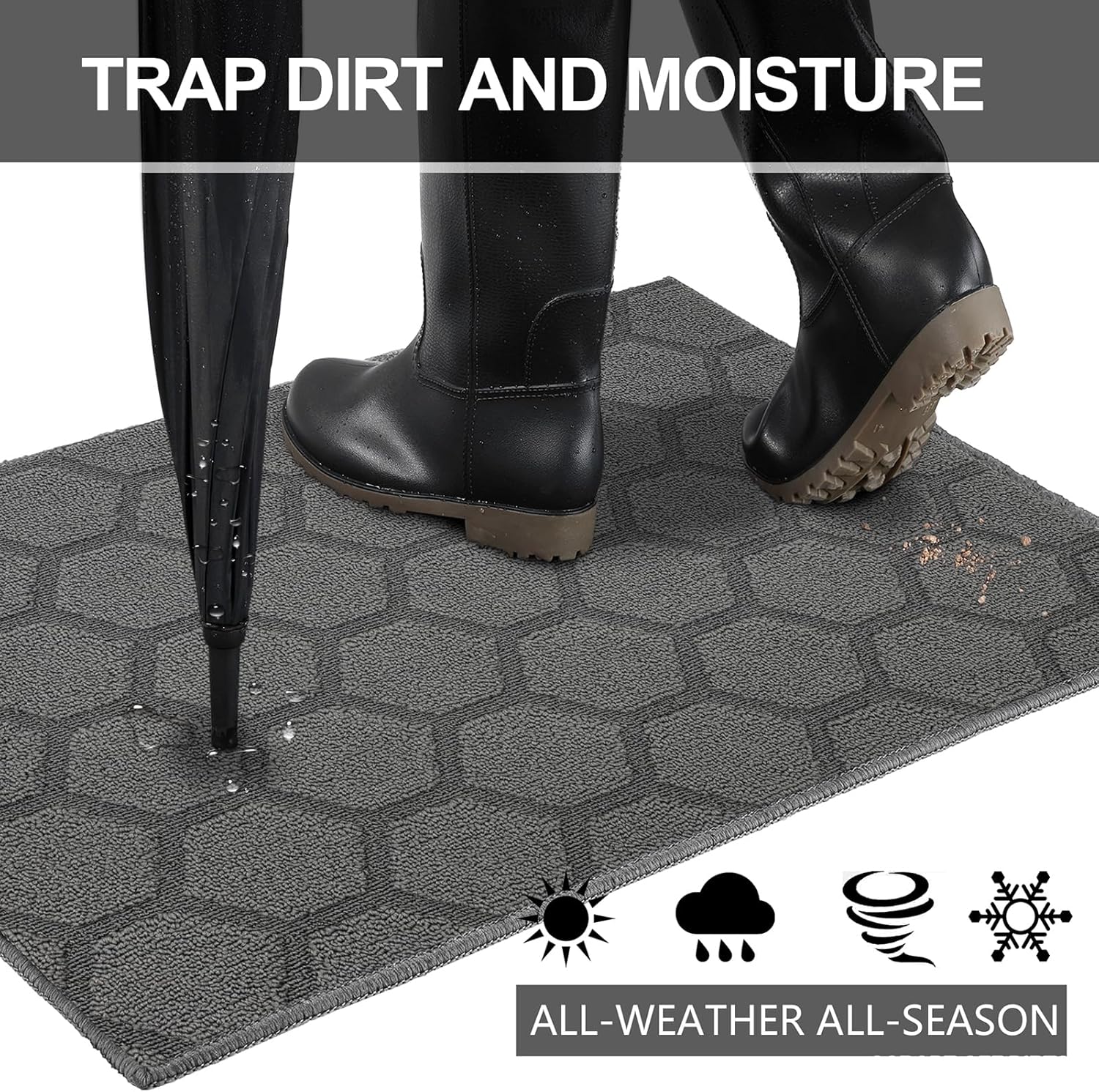 FONEYI Indoor Door Mat, Entrance Rug 24" x 36" Non-Slip Rubber Backing, Machine Washable Entry Rug, Low Profile Absorbent Dirt Trapper Doormat Inside Floor Mats for Entryway, Grey