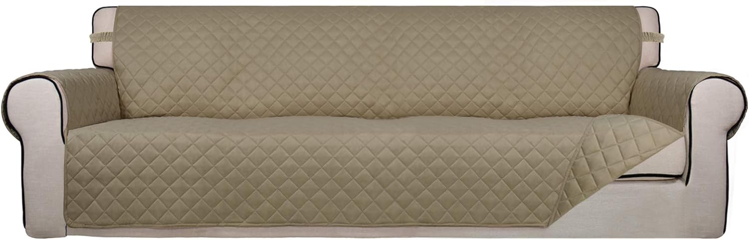PureFit Reversible Quilted Sofa Cover, Water Resistant Slipcover Furniture Protector, Washable Couch Cover with Non Slip and Elastic Straps for Kids, Dogs, Pets (XX Large, Beige/Beige)
