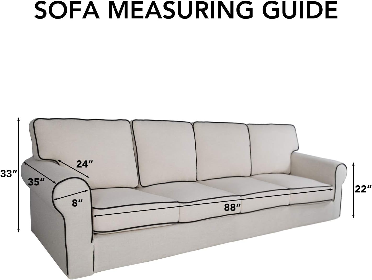 - Super durable 3-layers quilted fabric: Quilted from tear-resistant Microfiber fabric (polyester composition), this durable sofa furniture cover is composed of 3 layers with thick poly foam filling for extra comfort & softness. Our couch slipcovers are designed and ready-made to fit a variety of 4 seater sofa sizes with seat width up to 88"