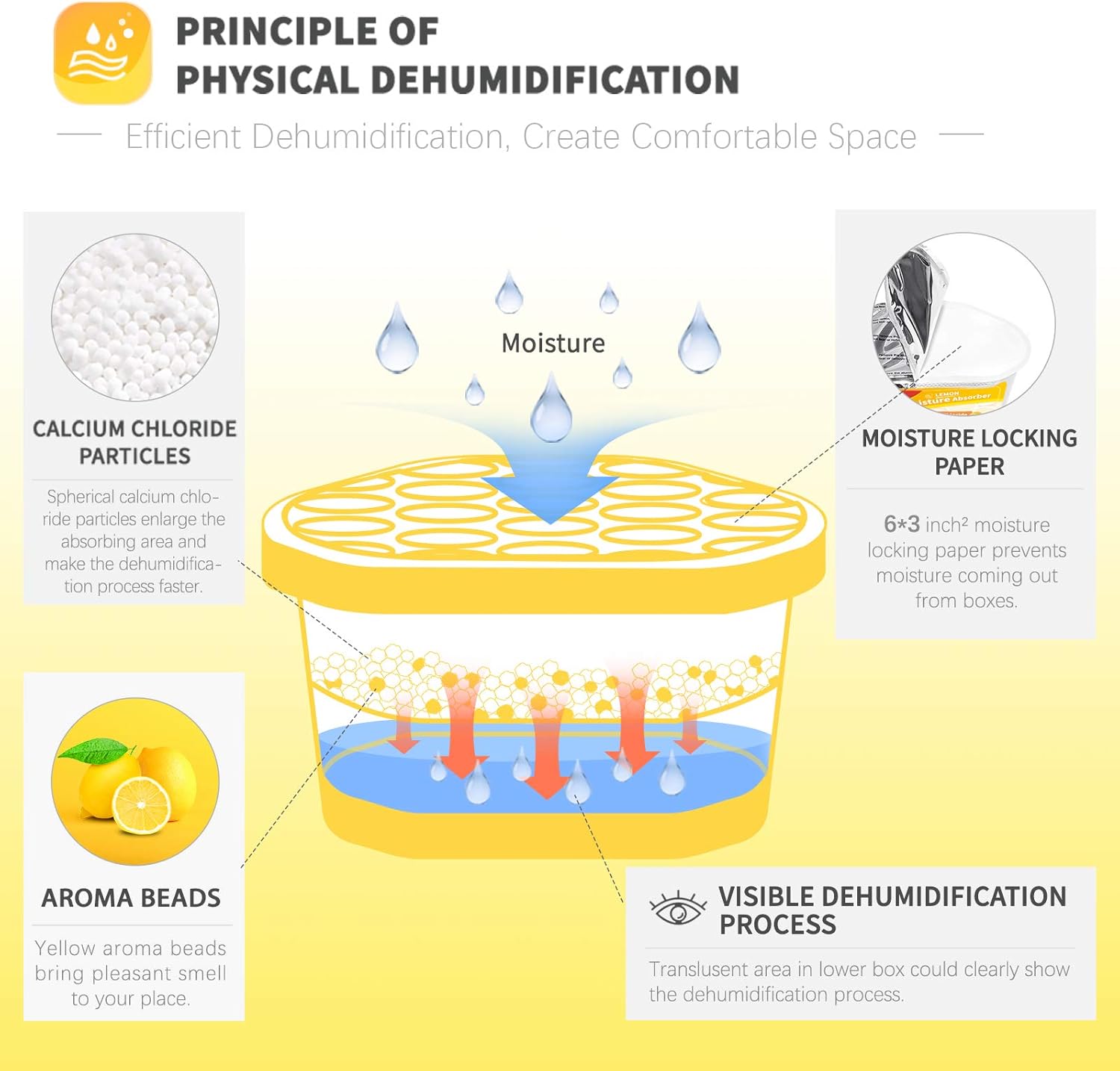Vacplus Moisture Absorbers 6 Pack, 10.5 Oz Portable Humidity Absorber Boxes for Your Bathroom, Closet & Car, Dehumidifier with Lemon Fragrance, Yellow