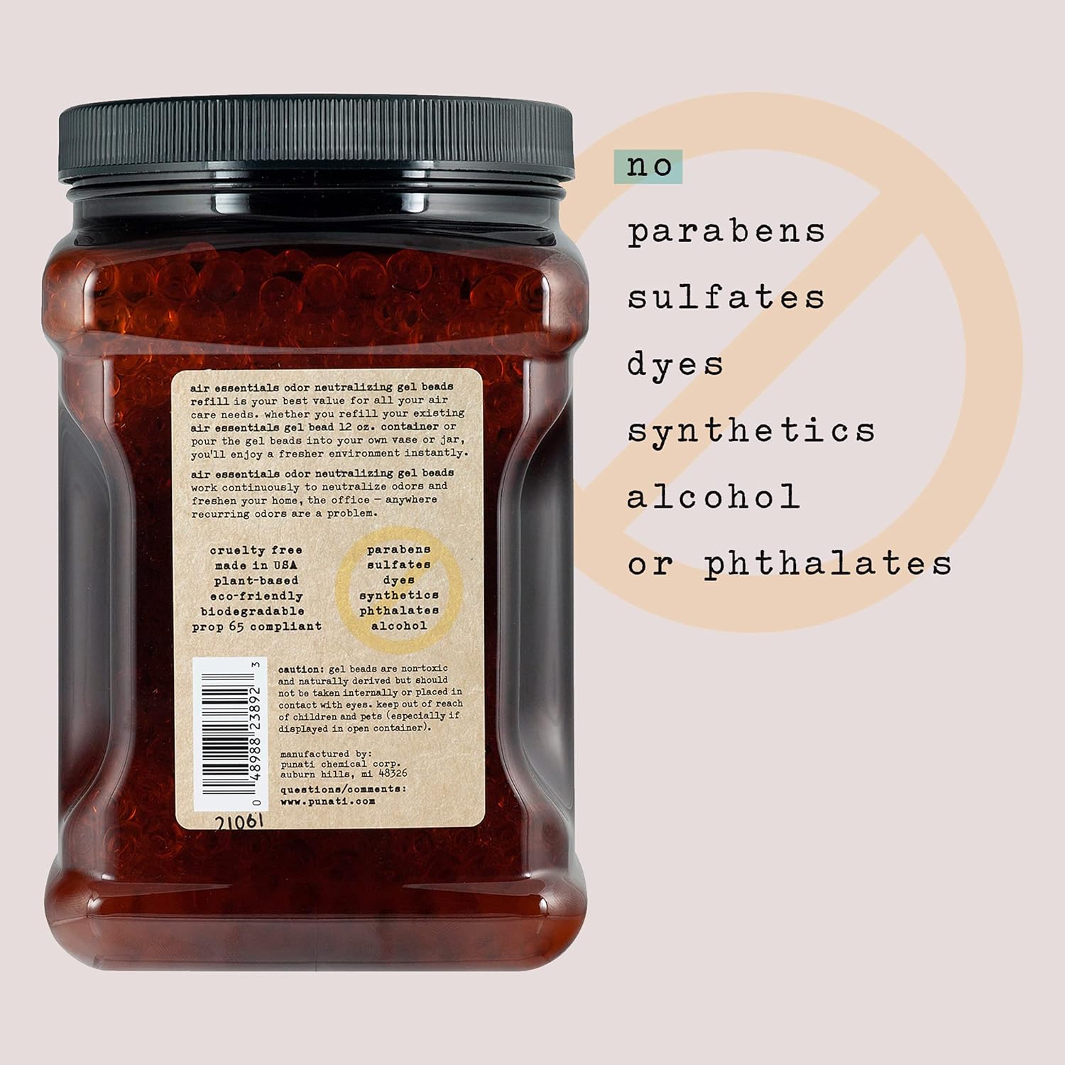 - MADE IN THE USA - Air Essentials Gel Beads do not contain parabens, sulfates, dyes, synthetics, alcohol or phthalates. Every jar is proudly Made in the USA and is formulated with plant derived ingredients. Citrus Blossom is a blend of citrus, vanilla and lavender essential oils.