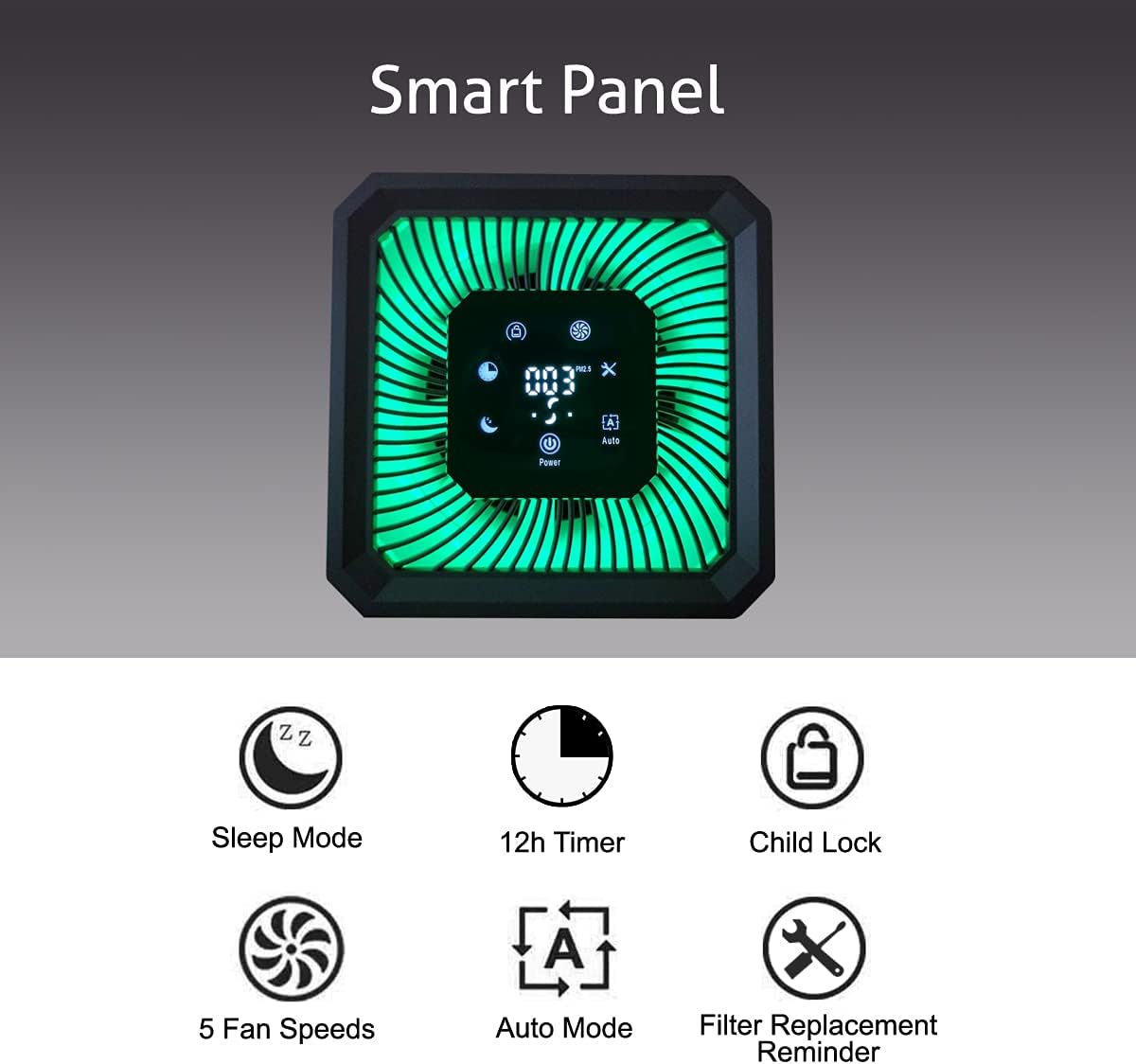 - Air Quality Sensor: The brightly colored LED provides air quality feedback through high precision air quality sensor that monitor air particles in your room, and it features a timer for 1-12 hours. It has a filter life time indicator to let users to be aware of when to replace the filter