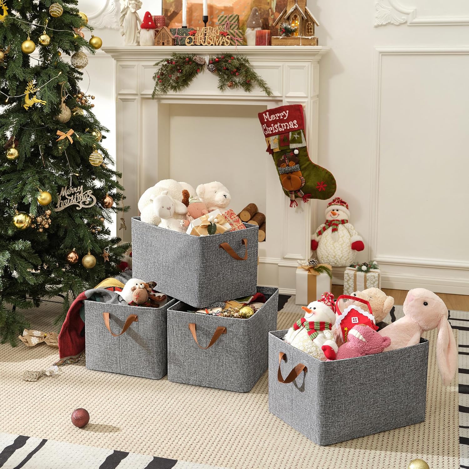 GRANNY SAYS Closet Storage Baskets, Collapsible Fabric Storage Bins with Metal Frame, Clothes Organizer Bins, Extra Large Baskets for Shelves, Gray, 4-Pack