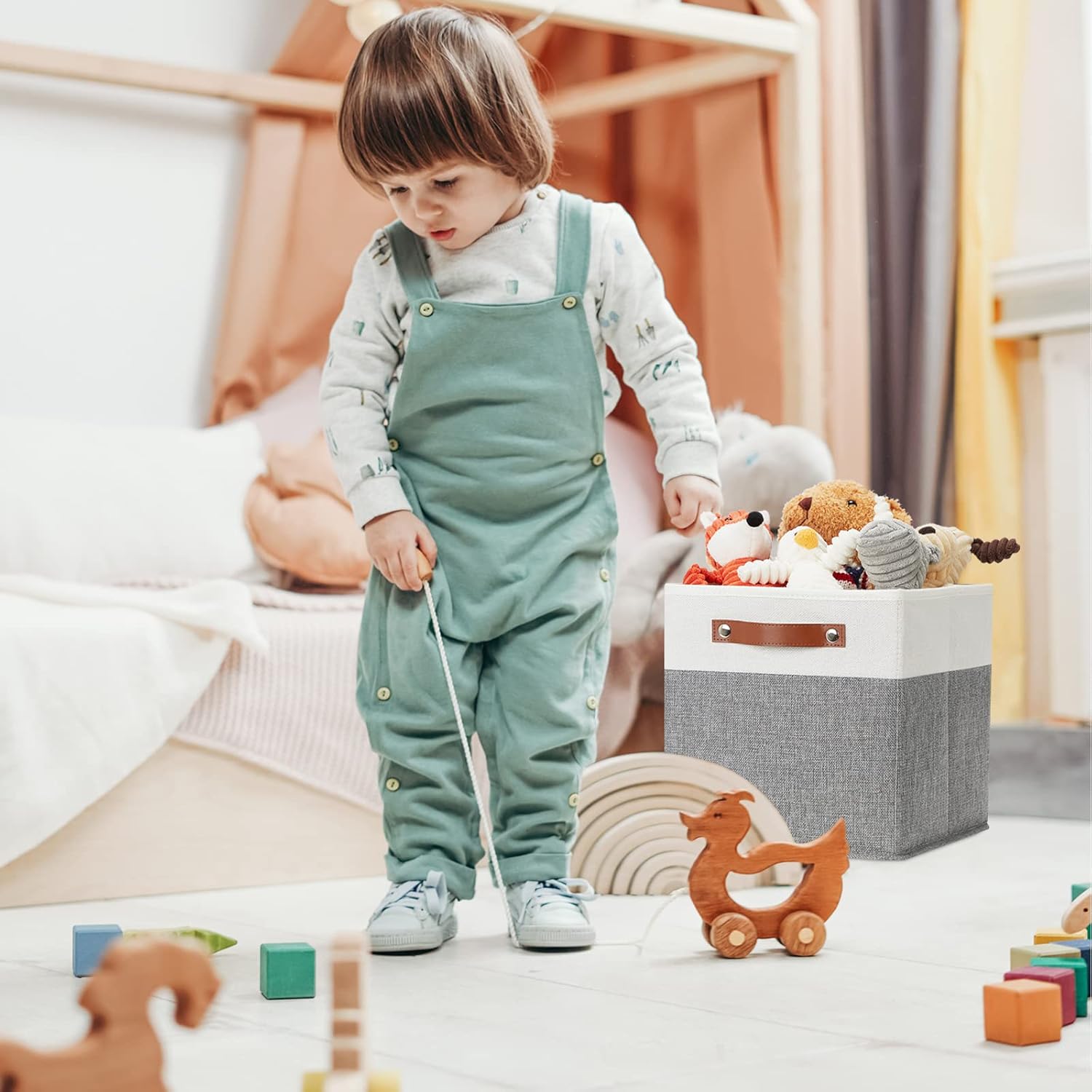 DULLEMELO 11x11 Storage Cubes, Collapsible Sturdy Cube Storage Bins With Handles for Organizing,Fabric Storage Cubes Baskets for Shelves Nursery Closet Home Organization and Storage (White&Grey)