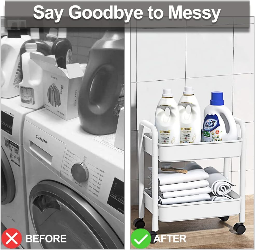 - 👍【Multifunctional Storage】-- This 2 tier rolling storage cart has multiple functions which can be used anywhere you want it to be such as office, bathroom, kitchen, art studio, salon, garden, garages, laundry rooms hobby and craft areas and so on. It can be used as a tools cart, organization rack, sofa or bed side end table, nightstand, book cart, bedroom/living room storage cart and so on.