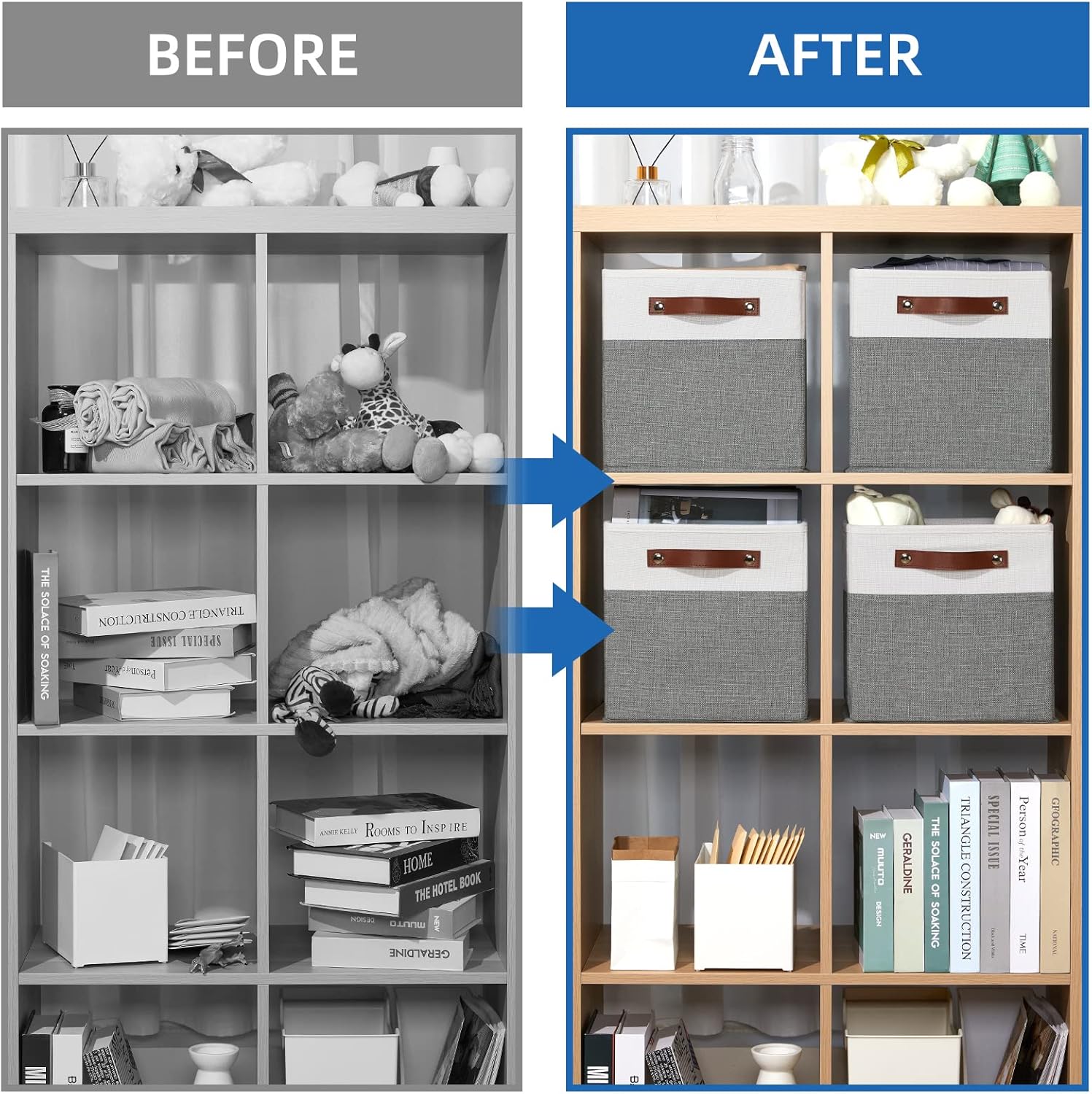 - MULTI-PURPOSE STORAGE CUBES: Ideal for a variety of basic household storage needs, helping to keep your living spaces neat. The storage cubes can be used as 11 storage cube bins for cube storage, towel storage, book/magazine organizer, and many other uses Due to the light when shooting difference and other natural reasons and display resolution is different, there is a little color difference is normal, You can rest assured that our product is premium quality