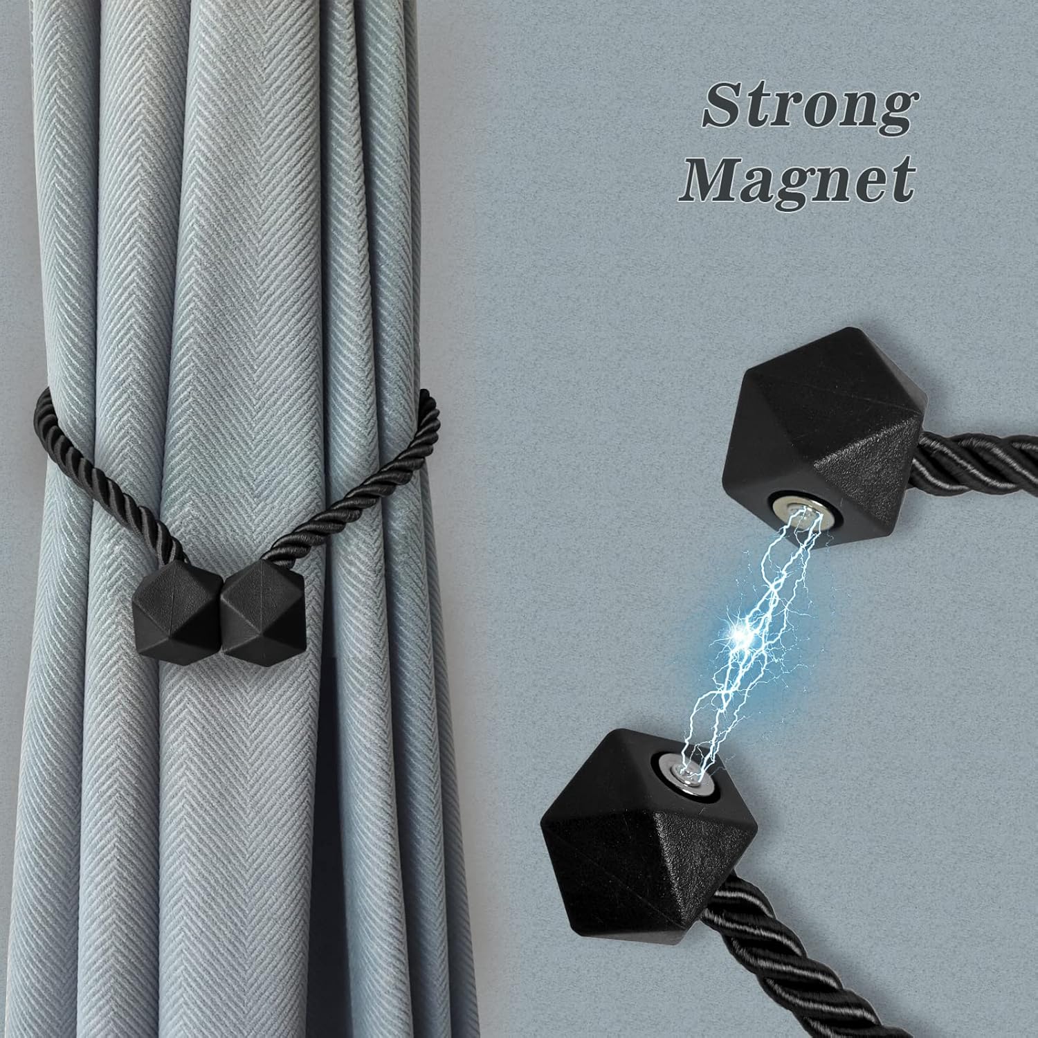 - π[Upgrade Powerful Magnetic] Our magnetic curtain tiebacks magnets use high-end new imported nickel-plated magnets, with strong corrosion resistance and durability, more magnetic than ordinary magnetic curtain tiebacks, and do not rust and not lose color. The rope of curtain tie adopts upgrade thickened solid polyester yarn, which is not only durable, but also not easy to wear or pilling.