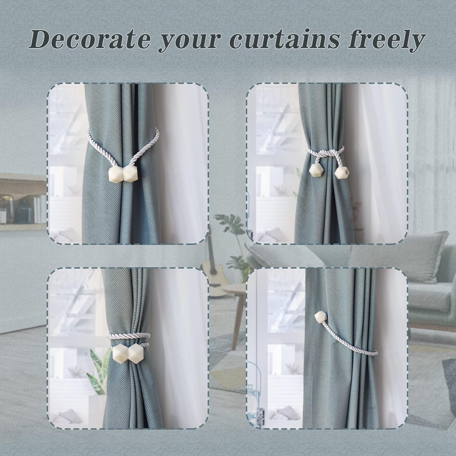 - π[Variety of use methods, suitable for a wide range of scenarios] You can clamp the curtains in different elegant ways, and when you don't use the curtains, you can fix them anywhere, which is perfect for living room, bedroom, kitchen, dining room, bathroom and office.