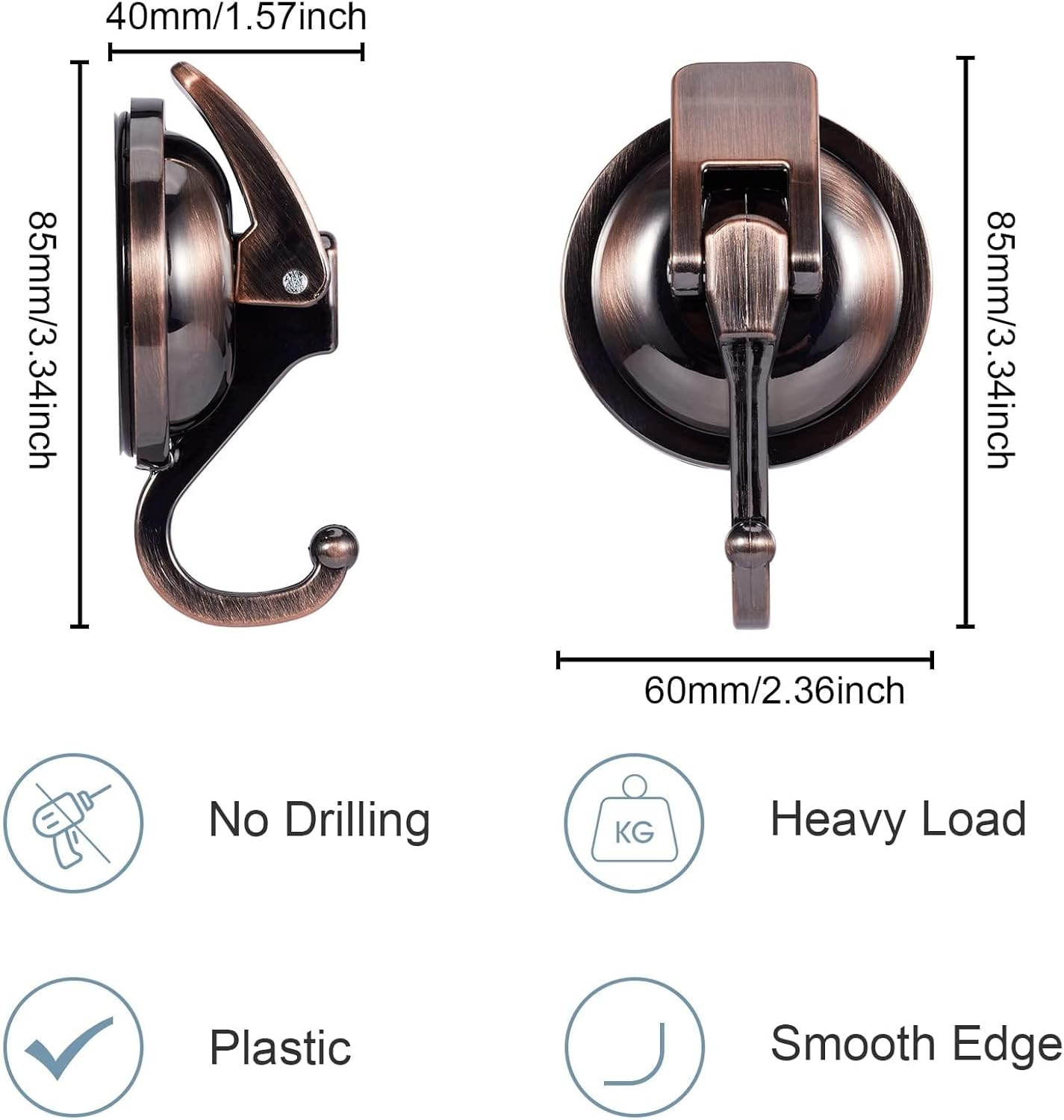 Suction Cup Hooks for Shower, Bathroom, Kitchen, Glass Door, Mirror, Tile – Loofah, Towel, Coat, Bath Robe Hook Holder for Hanging – Waterproof Wreath Hanger (Red Bronze 2Pack)