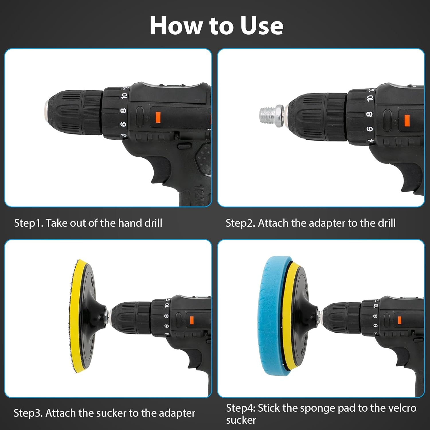 - 【Easy to Use】These polishing pads can be used in electric buffer such as Dual Action Polisher, Rotary Polisher, Air Polisher, Random Orbital Sander and Other Polisher. With the velcro backing, you can easily change the sponge. Used for waxing, polishing, glazing, cleaning and brightening of various lacquers.