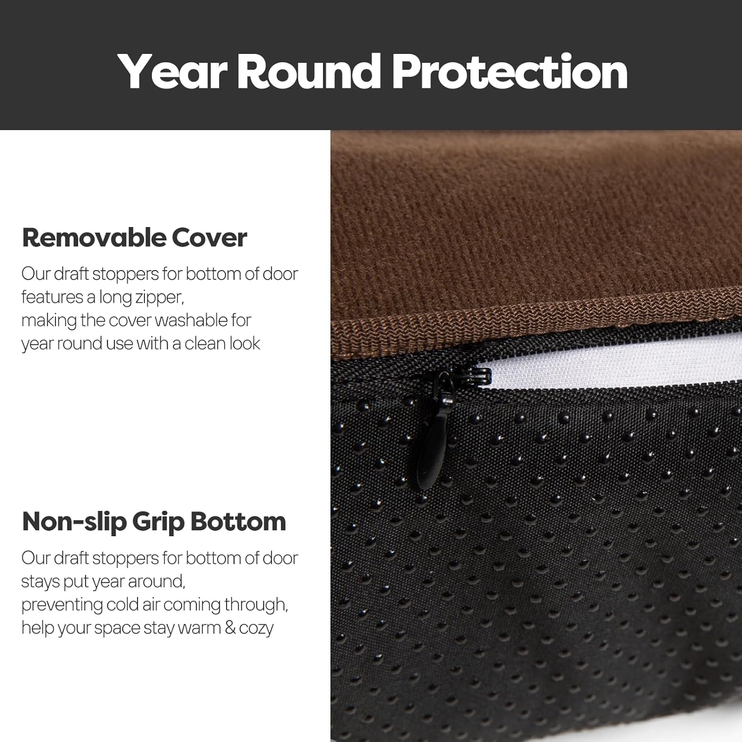 - Year Round Protection: Features non-slip grip bottom, lay evenly on floor year round, prevent draft air coming through. Comes with a removable & washable cover for whole-year clean look