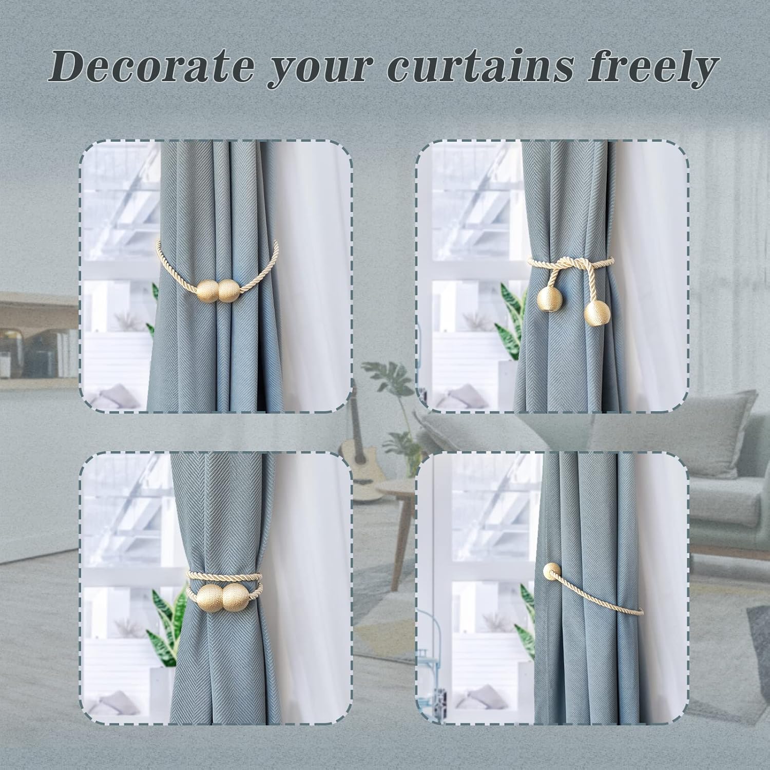 - [Variety of use methods, suitable for a wide range of scenarios] You can clamp the curtains in different elegant ways, and when you don't use the curtains, you can fix them anywhere, which is perfect for living room, bedroom, kitchen, dining room, bathroom and office.