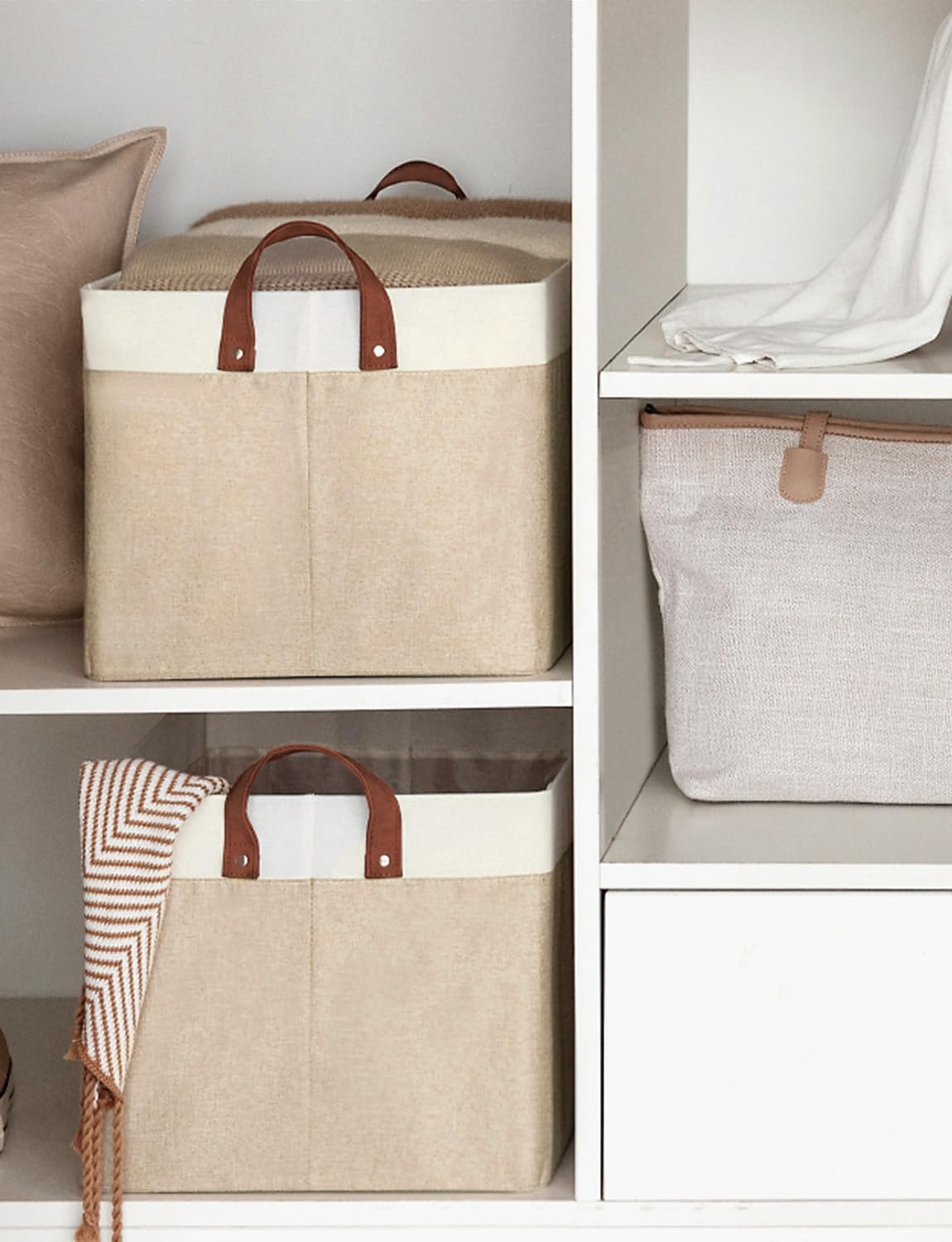 - Use Across Scenario: These shelf storage bins are sturdy enough to be used as clothing containers, helping you effectively organize your bedroom, living room, laundry room, or dorm room with simple and elegant color blocking designs to make your room tidier and prettier.
