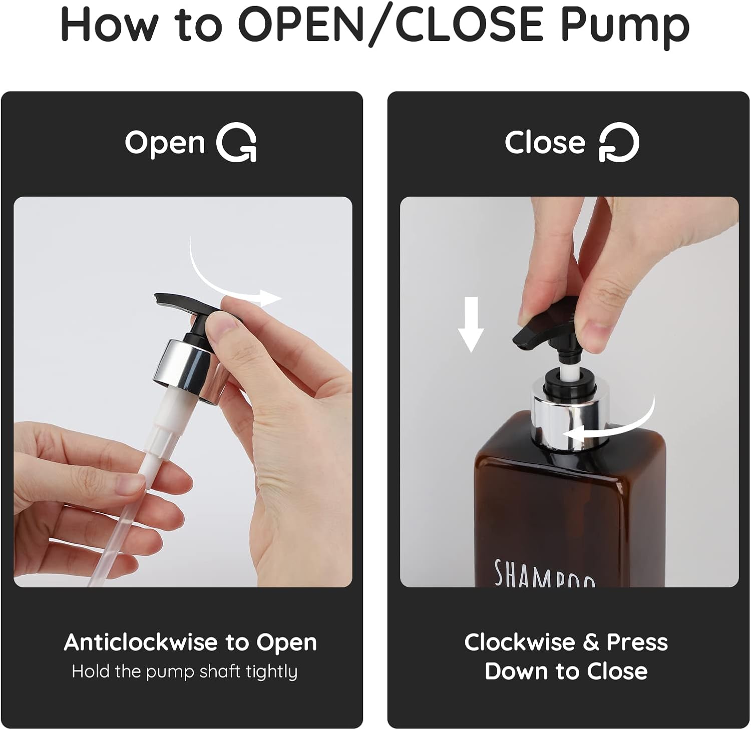 - 【Easy to Refill and Use】Remove the pump head and refill lotion with the wide mouth. Gently press the pump head to dispense it.