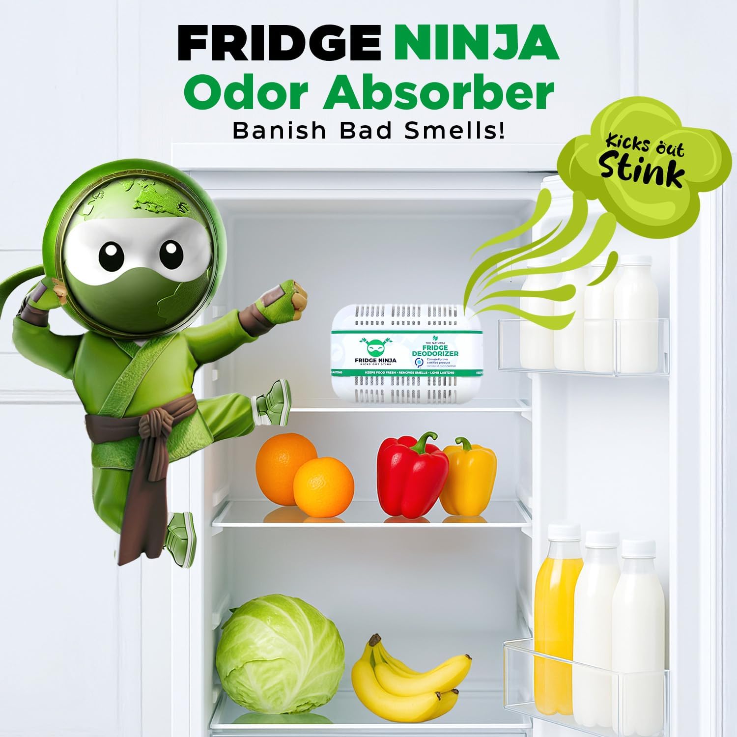 - POWERFUL FRIDGE DEODORIZER: Kick the stink out of your fridge once and for all with Fridge Ninja’s odor eliminator for strong odors. Our naturally activated bamboo charcoal odor absorbers banish lingering odors in your refrigerator for up to a year.