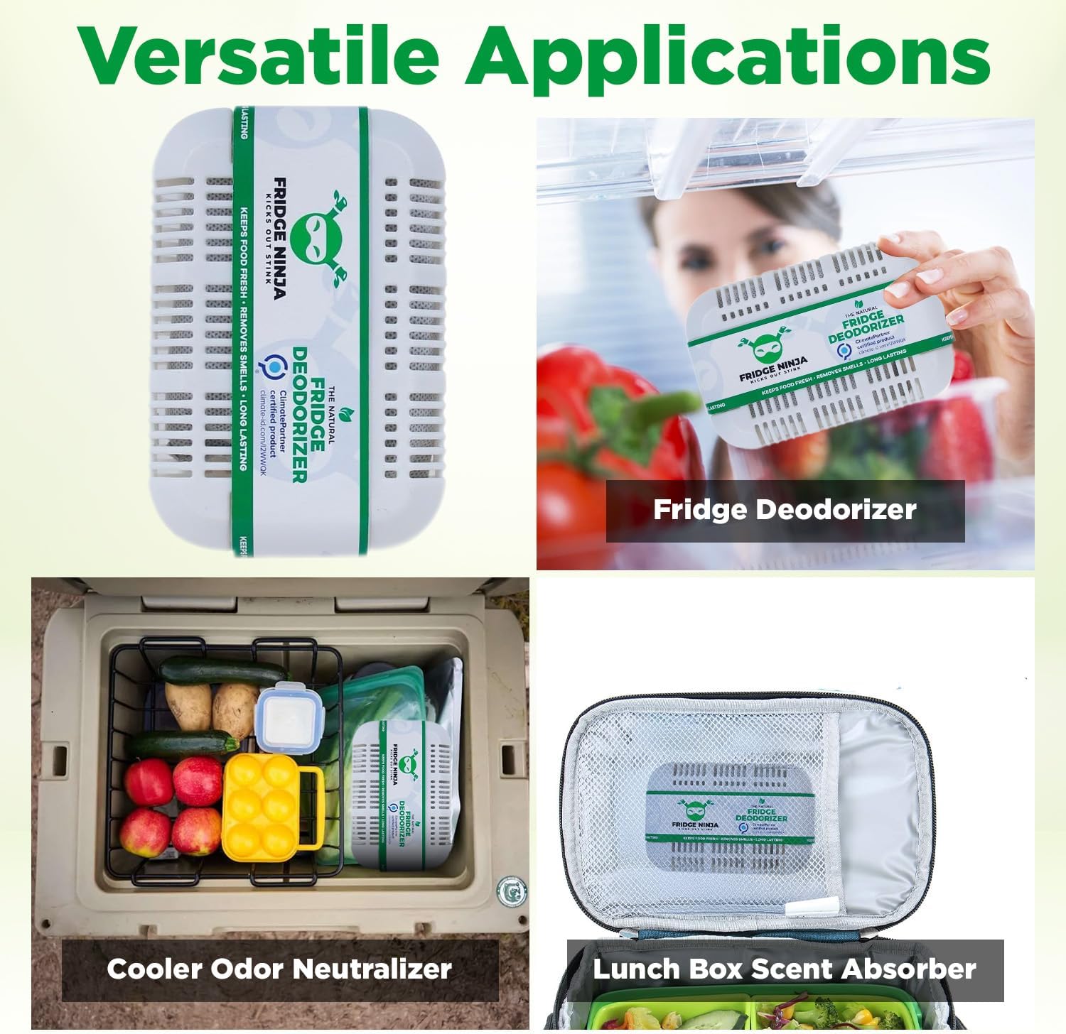 - VERSATILE APPLICATIONS: Fridge Ninja is one of the best refrigerator accessories for banishing bad smells from your refrigerator. But it has multiple alternative uses. Toss it in a cool box or lunch bag as a scent absorber and odor neutralizer on the go!