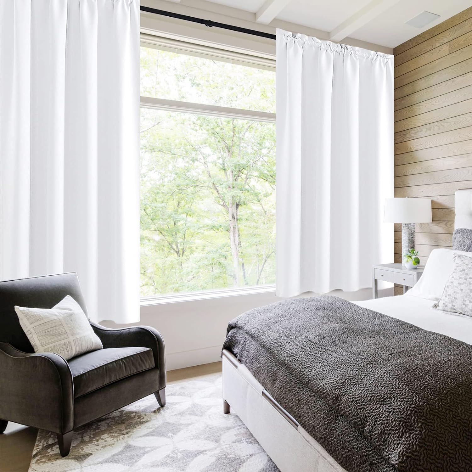 DWCN White Curtains for Living Room Thermal Insulated, 50% Light Blocking Curtains for Bedroom, Dining Room Window, W 52x L 54 Inch, Set of 2 Rod Pocket Curtain Panels