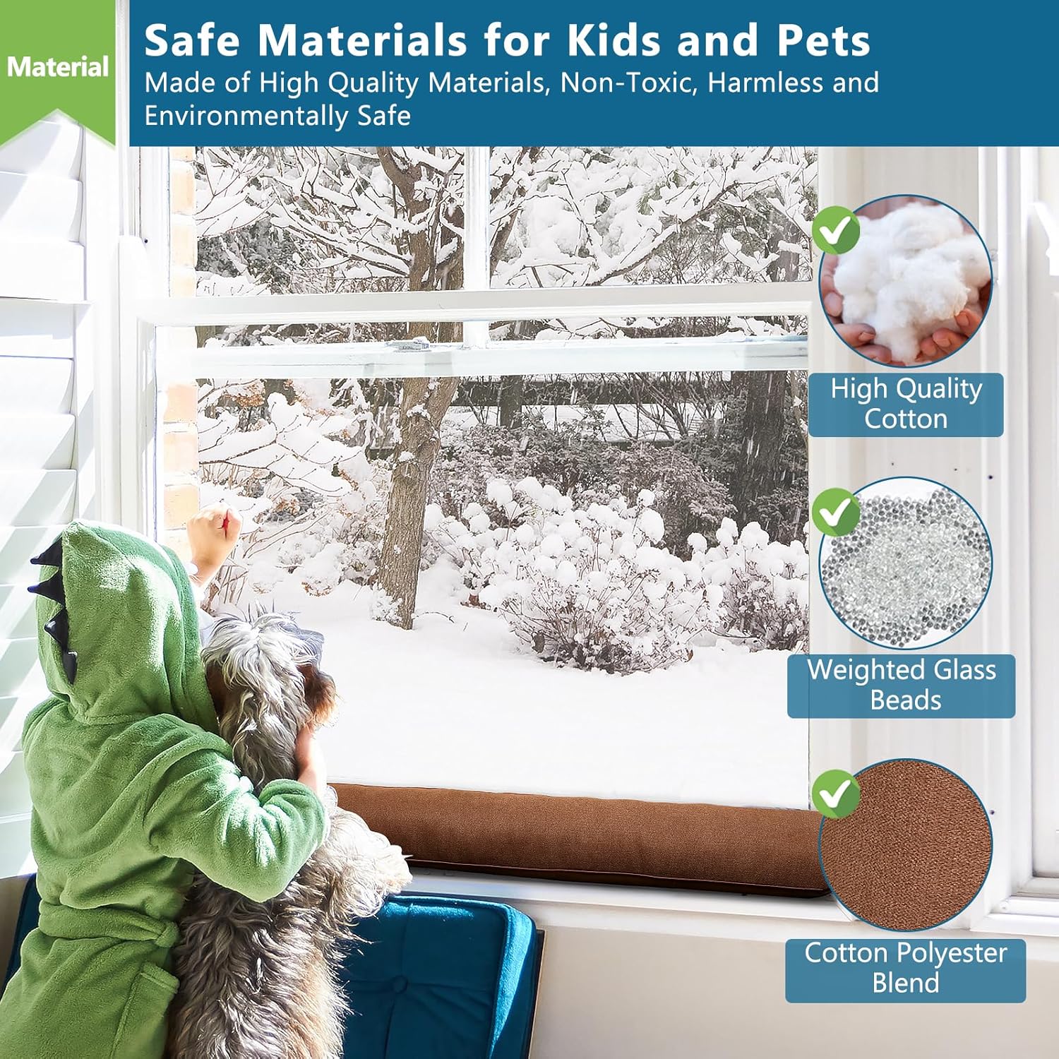 - SAFE AND DURABLE MATERIAL: The door draft stopper is made of cotton polyester blend and especially added glass beads, ensure the door blocker is not easily moved away from your door. And the material of door bottom draft stopper is friendly to kids and pets