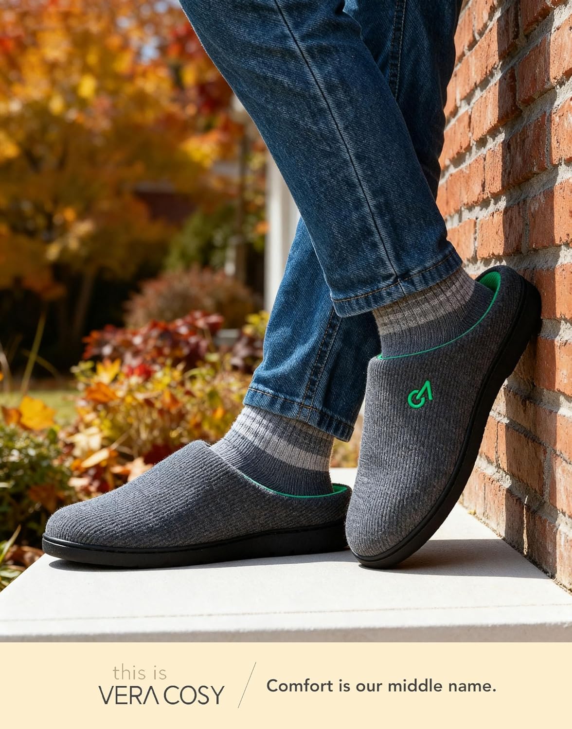 VeraCosy Men's Two-Tone Memory Foam House Slippers Indoor Outdoor Durable Rubber Sole