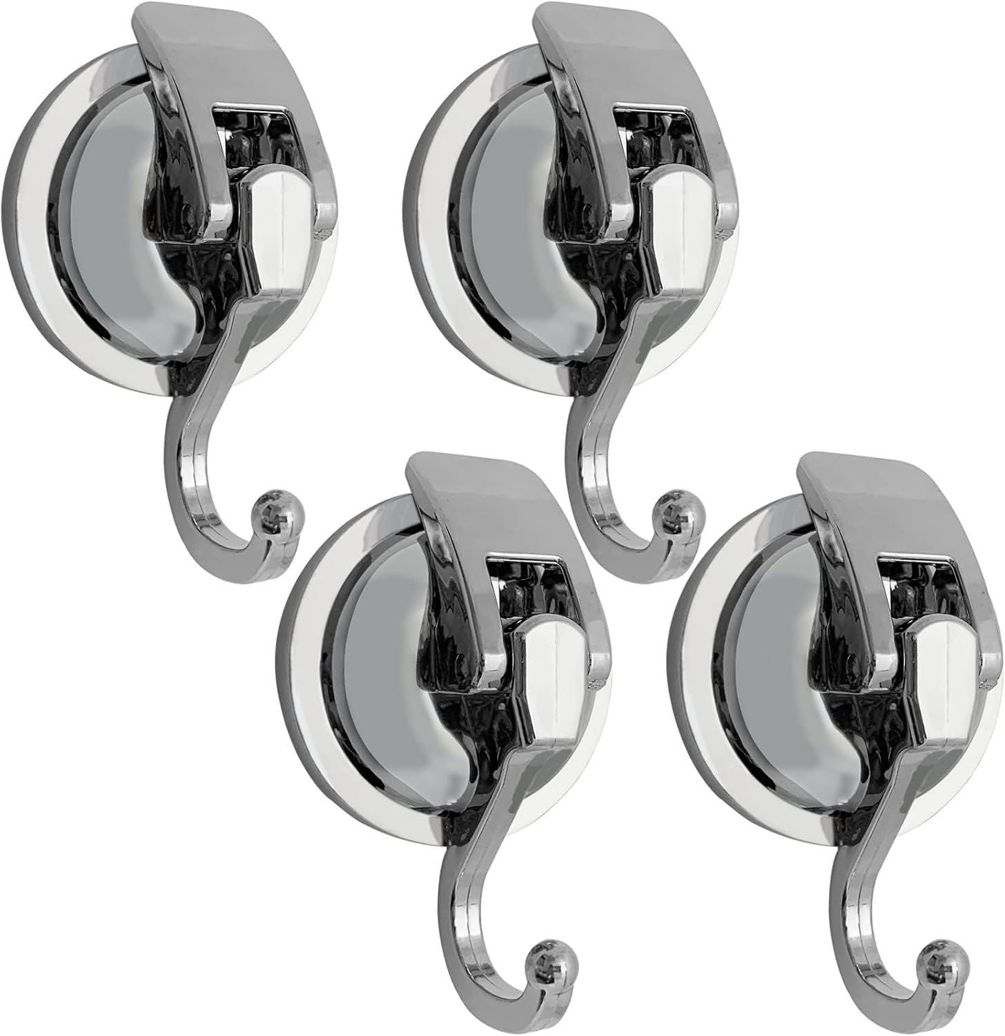 Suction Cup Hooks - Heavy Duty Glass, Reusable, No Hole Punched, for Bathroom Robe & Garland (Silver, 4 Pack)