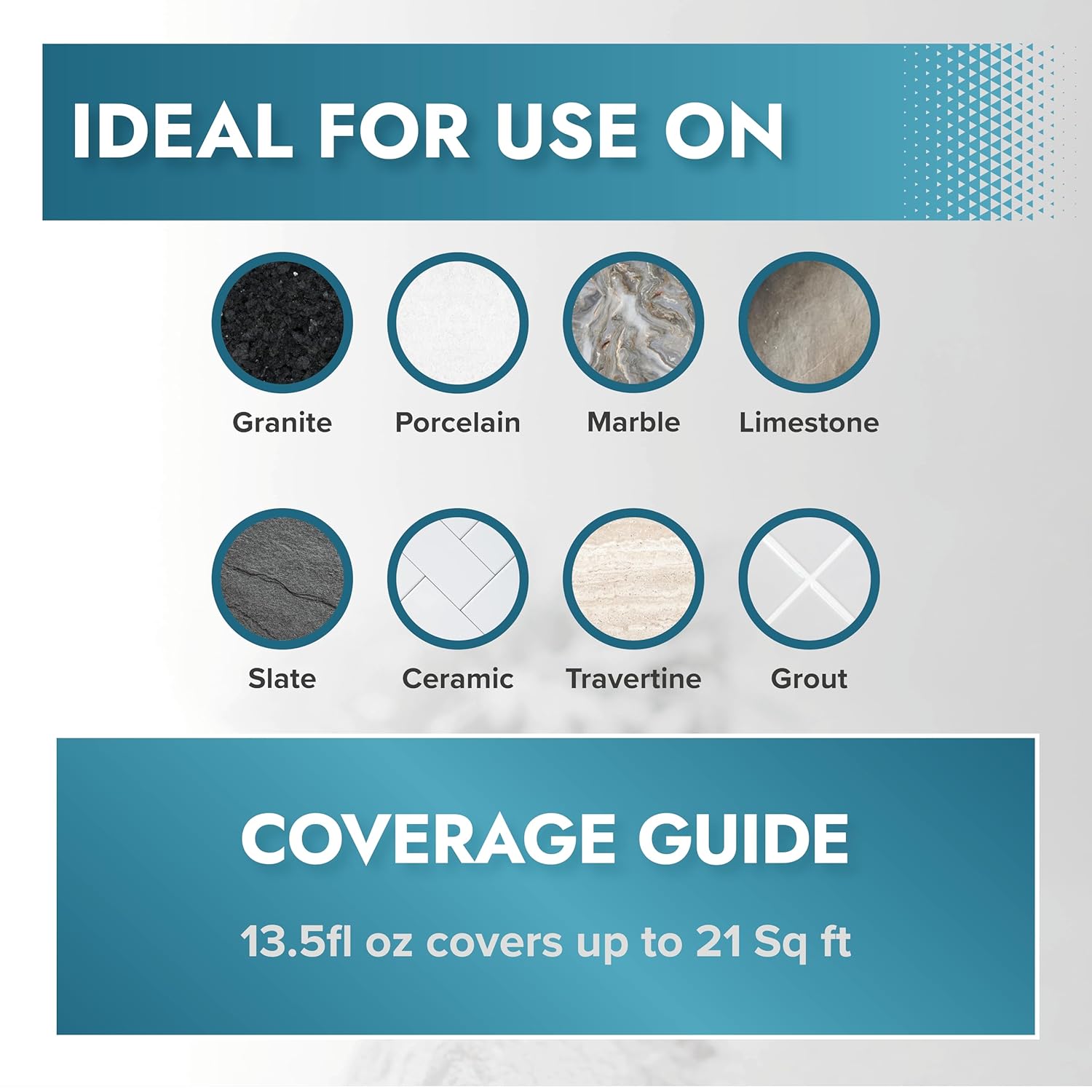 - Multi-Surface Compatibility: Suitable for a variety of surfaces, including shower walls, kitchen countertops, stone masonry, garden tables, tile floors, and ceramic or porcelain surfaces. Our tile and grout sealer offers reliable protection for both indoor and outdoor applications, adapting well to different environments and conditions.