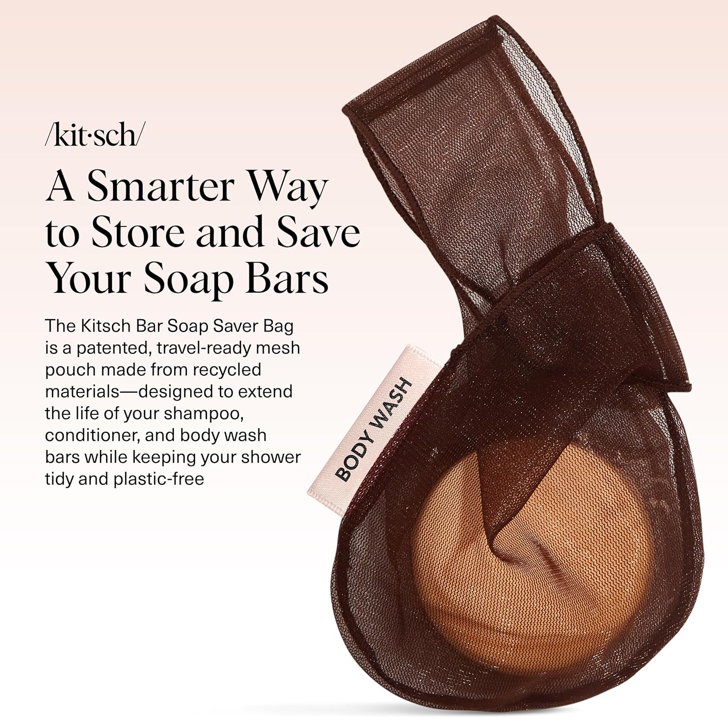 Kitsch Bar Soap Saver Bag – Patented Mesh Bag Soap Holder for Body Wash Bar - Extends Use & Prevents Soggy Mess - Recycled Mesh Beauty Pouch, Eco-Friendly – Chocolate
