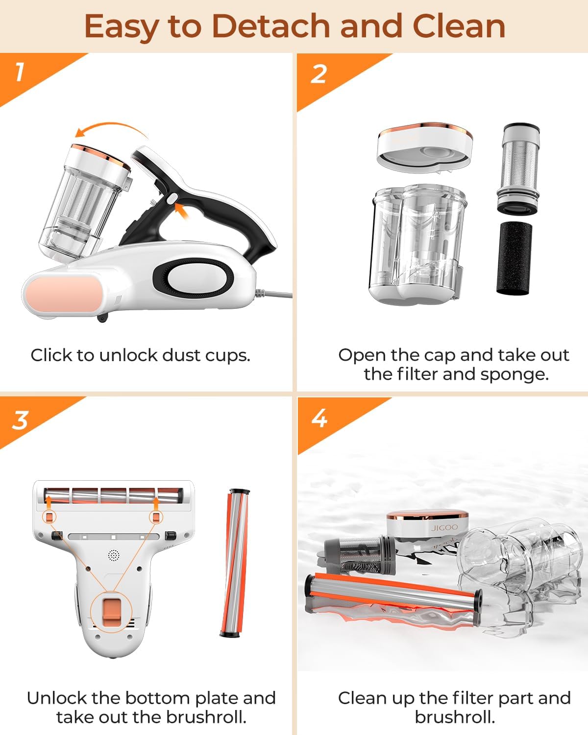 - 99% Protection: Equipped with UV lights and ultrasonic technology, JIGOO J300 mattress vacuum uses 245nm ultraviolet rays and ultrasonic waves to eliminate various, ensuring the health of your family.