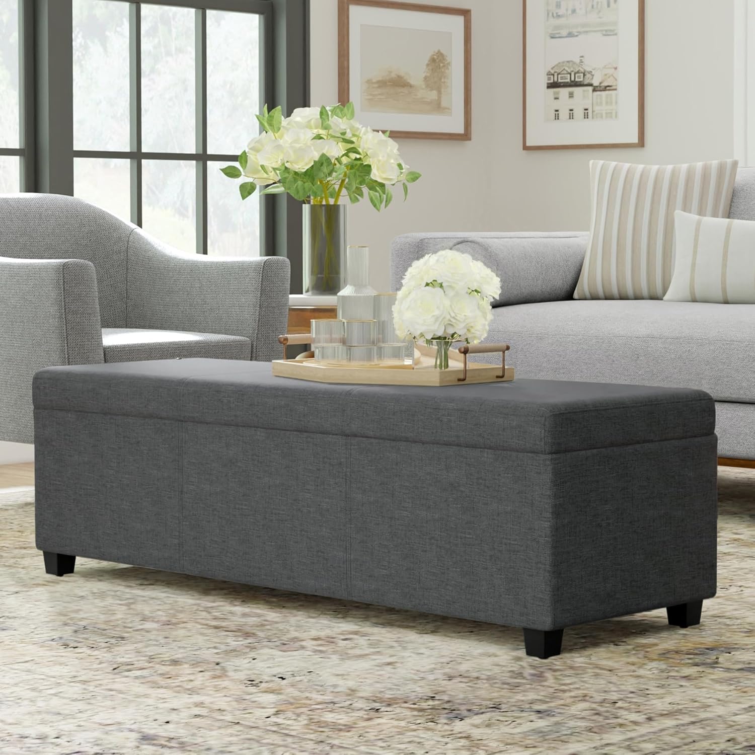 SIMPLIHOME Avalon 54 inch Wide Contemporary Rectangle Extra Large Storage Ottoman Bench in Slate Grey Polyester linen fabric, Assembled, For the Living Room, Entryway and Family Room
