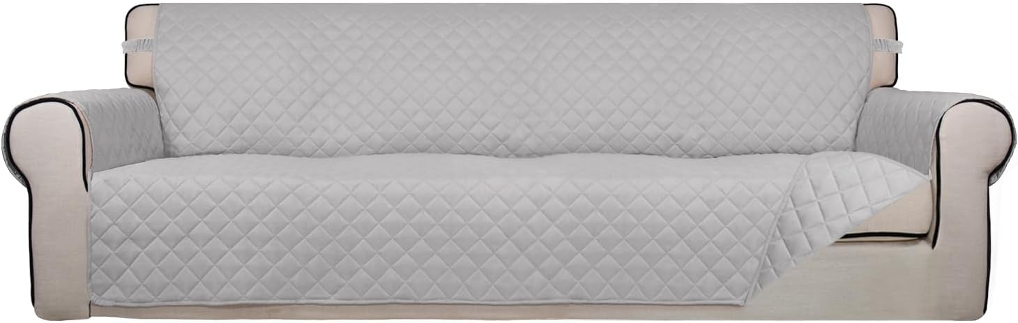 PureFit Reversible Quilted Sofa Cover, Water Resistant Slipcover Furniture Protector, Washable Couch Cover with Non Slip and Elastic Straps for Kids, Dogs, Pets (XX Large, Light Gray/Light Gray)
