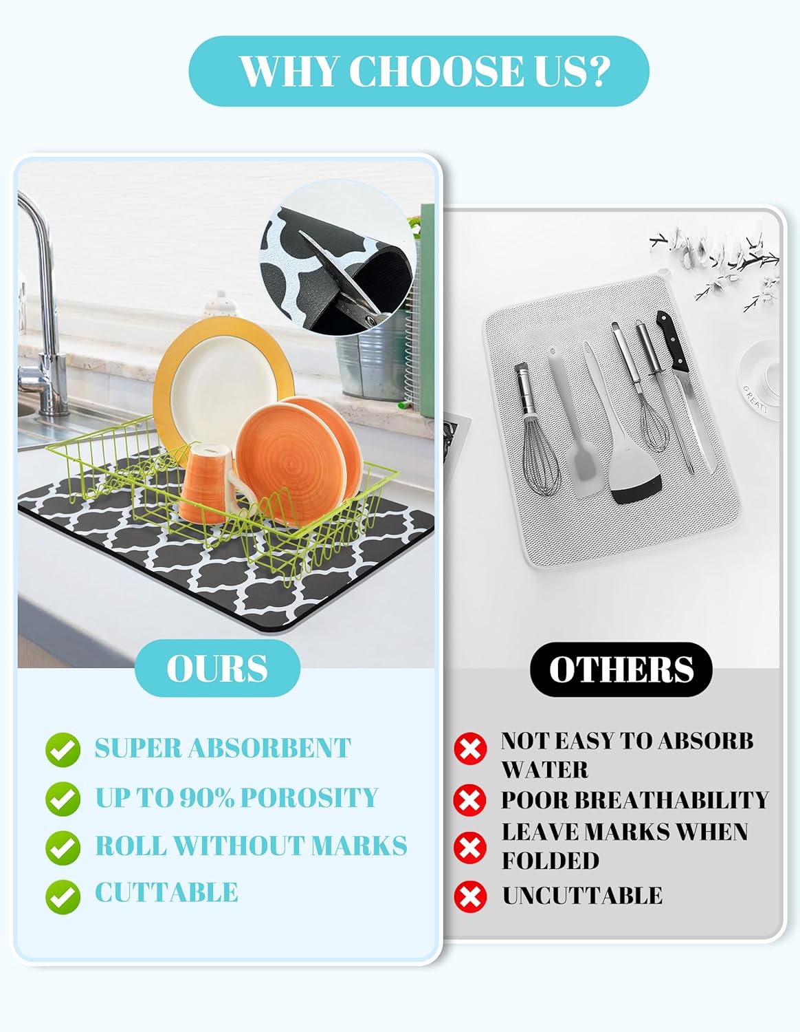 - DISH DRYING MAT: The drying mat is soft and absorbent, Always keep countertops clean and tidy. A practical kitchen mat accessory is definitely worth choosing.