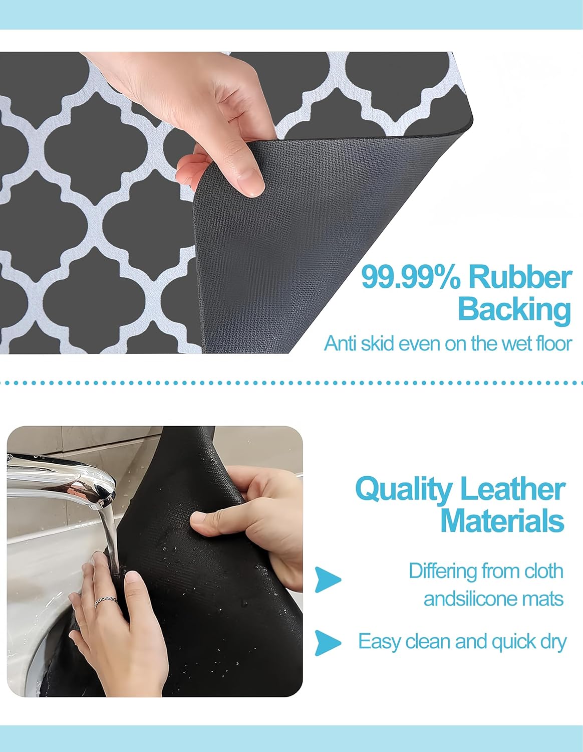 Dish Drying Mat for Kitchen Counter, 16"x24" Dish Drying Pad with Non-slip Rubber Backed, Hide Stain Anti Absorbent for Kitchen Counter, Drying Mat for Coffee Machine Dish Rack (Gray Trellis)