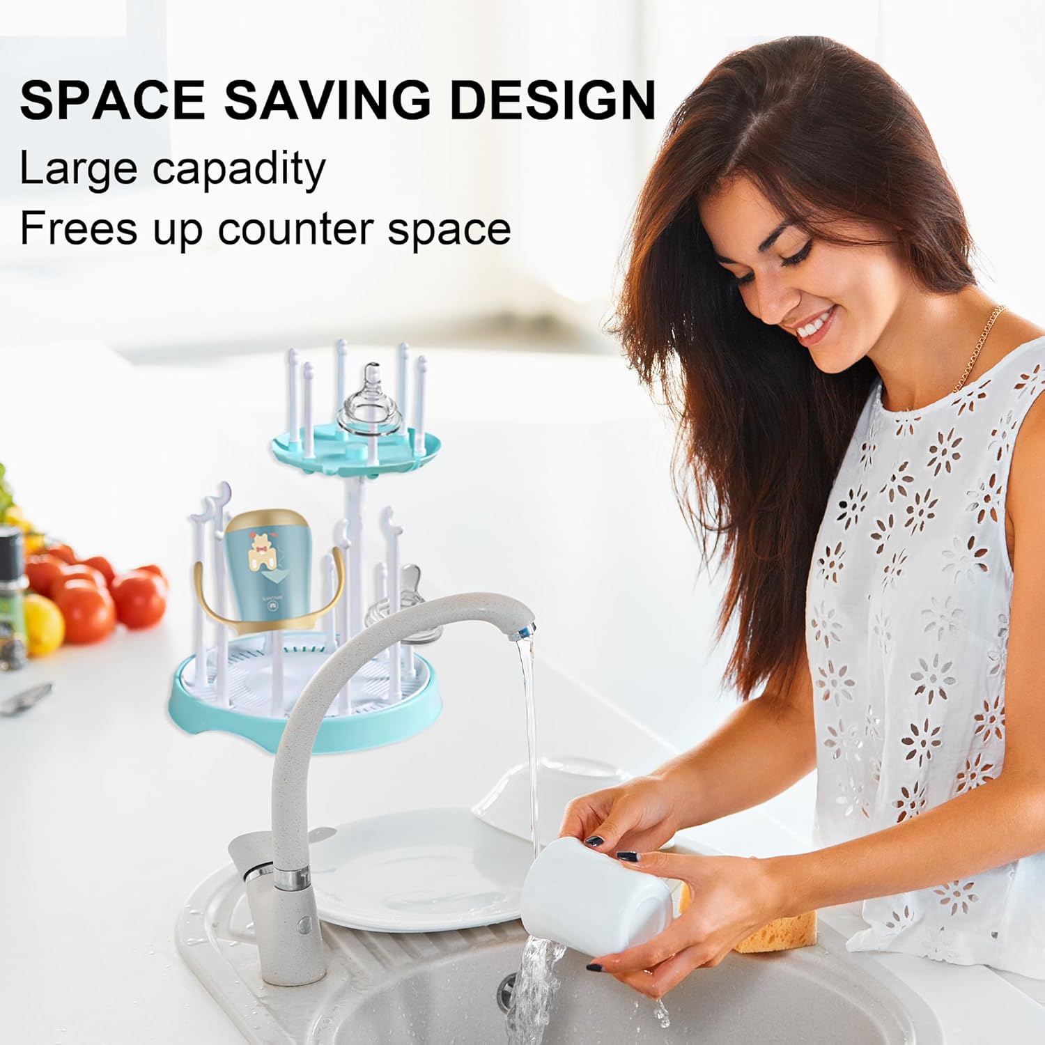 Baby Bottle Drying Rack,Double-Layer Bottle Drying Rack,Hold Up to 16 Baby Bottles,Suitable for Indoor, Kitchen, Living Room(Quiet Blue)