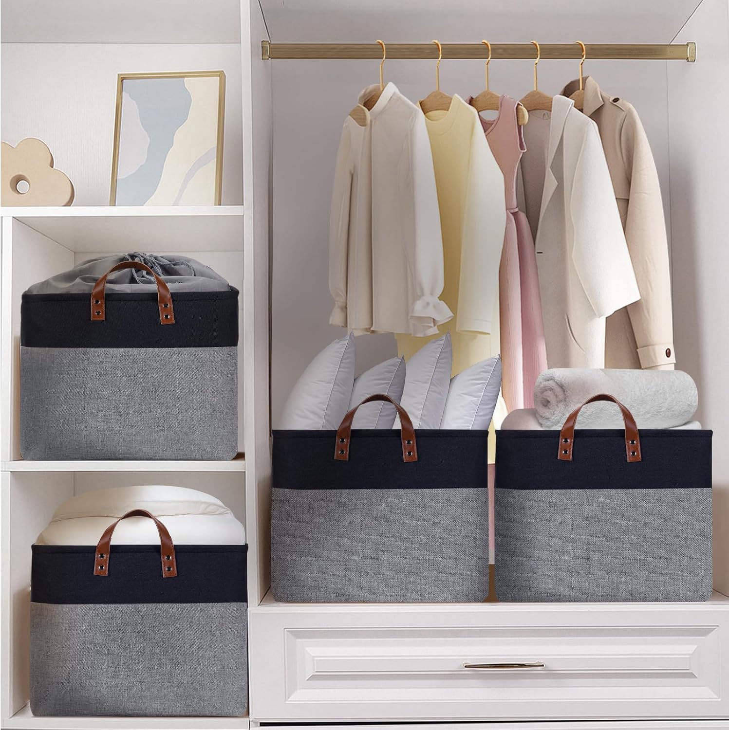 DULLEMELO Extra Large Storage Basket 22X15, 70L Foldable Fabric Toys Baskets Organizer Bins, Black&Grey