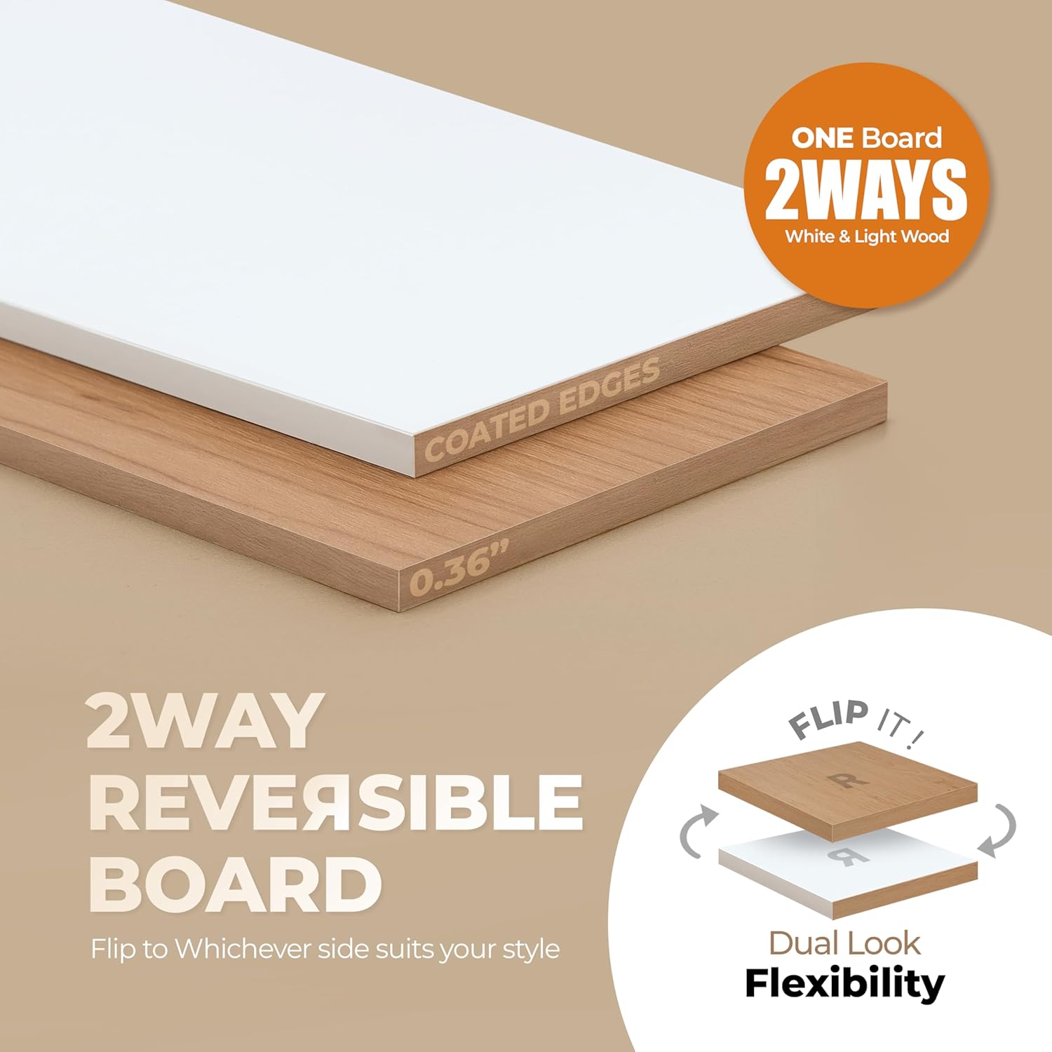 - IDEAL & PRACTICAL HOME DECORATION SHELVING - As applied posh white matte color and smooth secret hole design, it creates modernity and enhances the home interior effect. You can choose the wood pattern board that can use both sides (Wood Grain or White Pattern) freely to suit the mood of your home by turning upside down easily. It is made of thick Eco-friendly overlaid coating boards, so you don't need to paint them to avoid moisture or use shelf liner to prevent falling out.