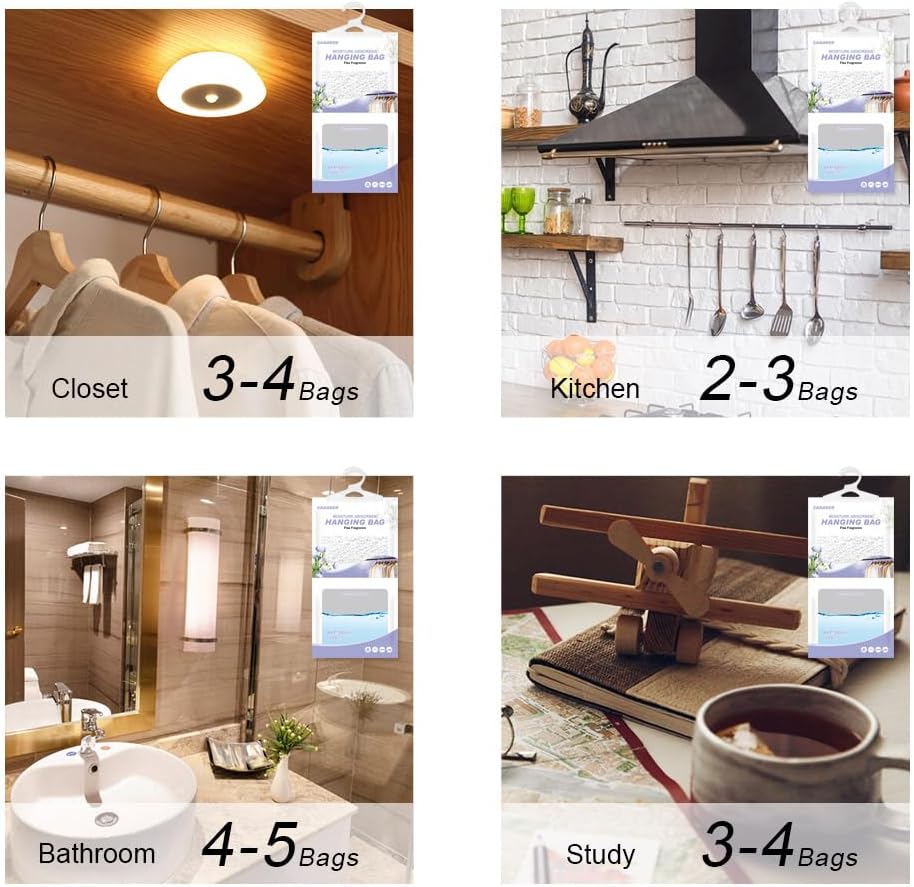 - 【Easy to use】Dehumidifier bag is easy to use,just hang in the desired area. It is the best solution to create the clean and fresh air environment for you.They can create clean and fresh air for you, and let you enjoy dry and comfortable indoor environment for a long time.