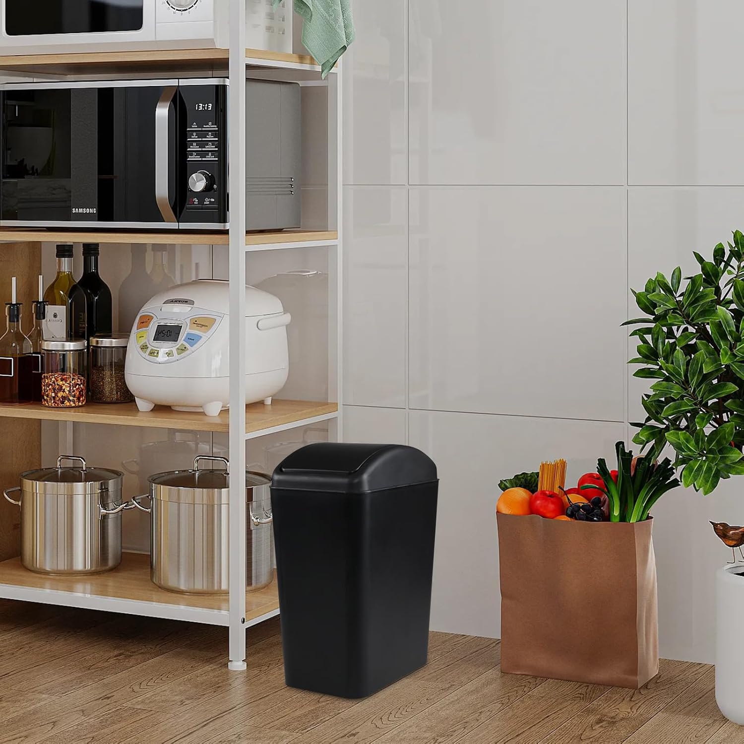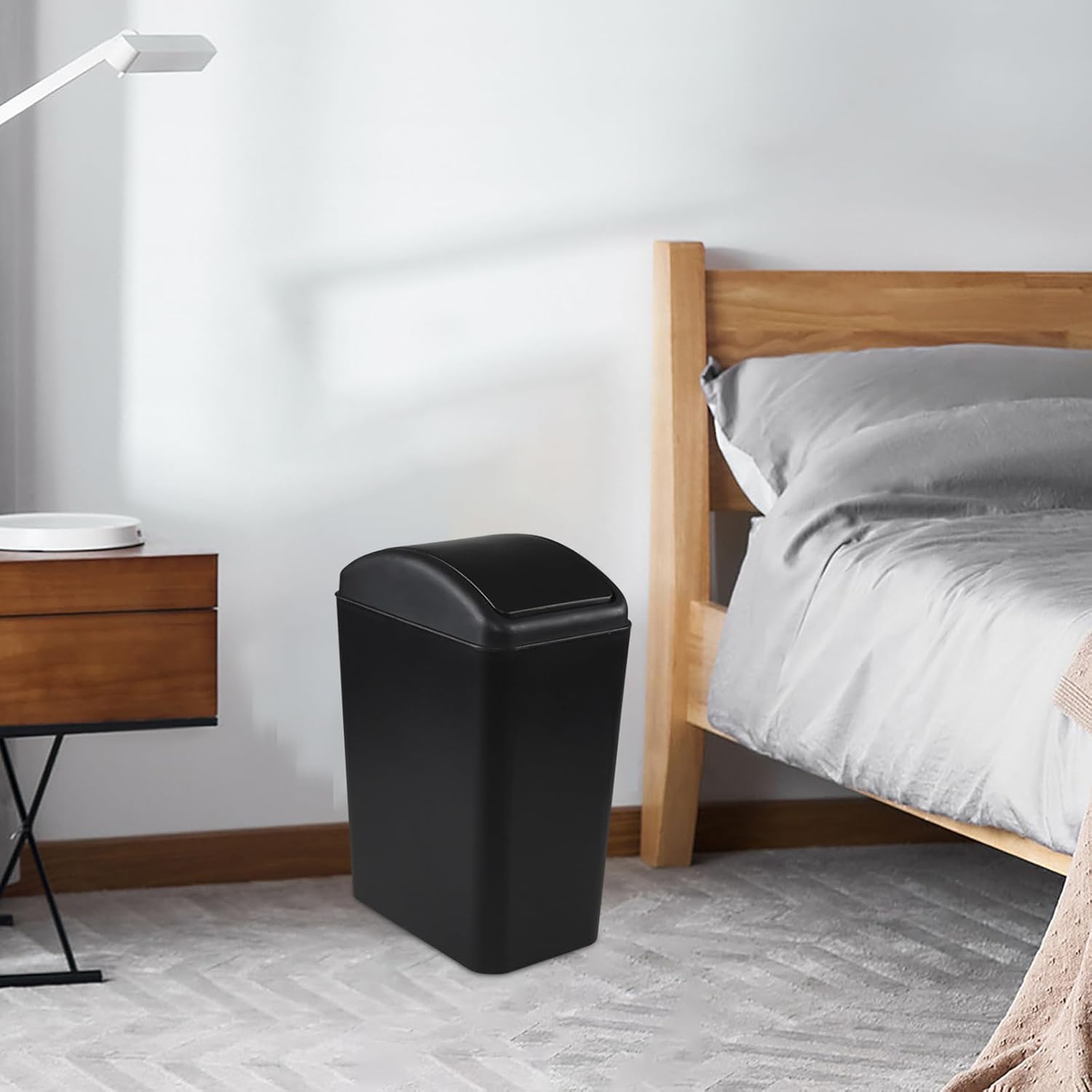 - Narrow trash cans are suitable for placing in small areas such as toilets, bathrooms, kitchens, and bedrooms
