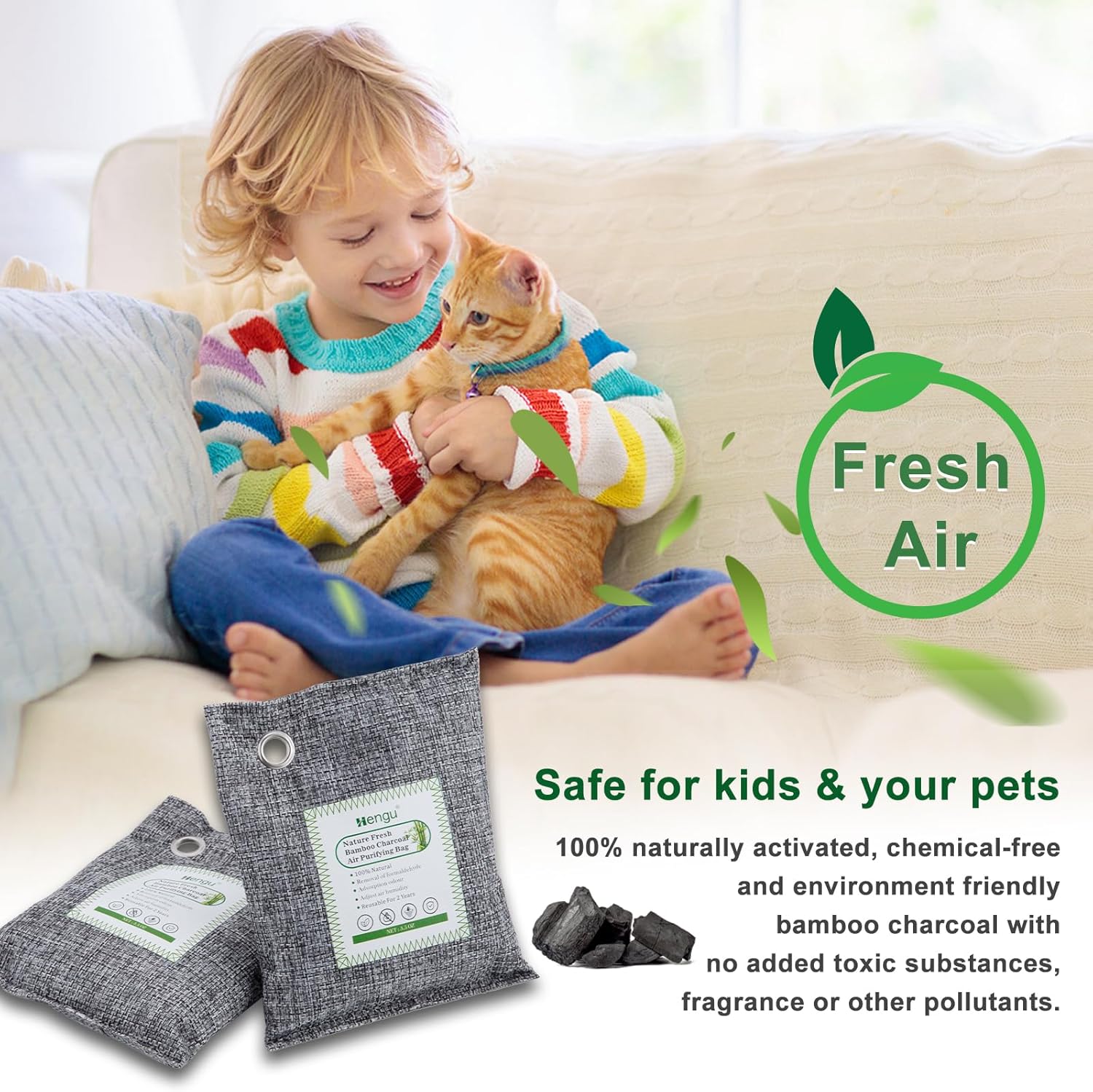 - 【Widely Used】The bamboo charcoal air purifying bag are made from natrual bamboo charcoal. You can use it anywhere such as living room, drawer, closet, shoe cabinet, car, wardrobe, fridge, pet room, sports bag, Etc. Anywhere there is a bad smell, these deodorizers will make it feel like breathing fresh air in nature.
