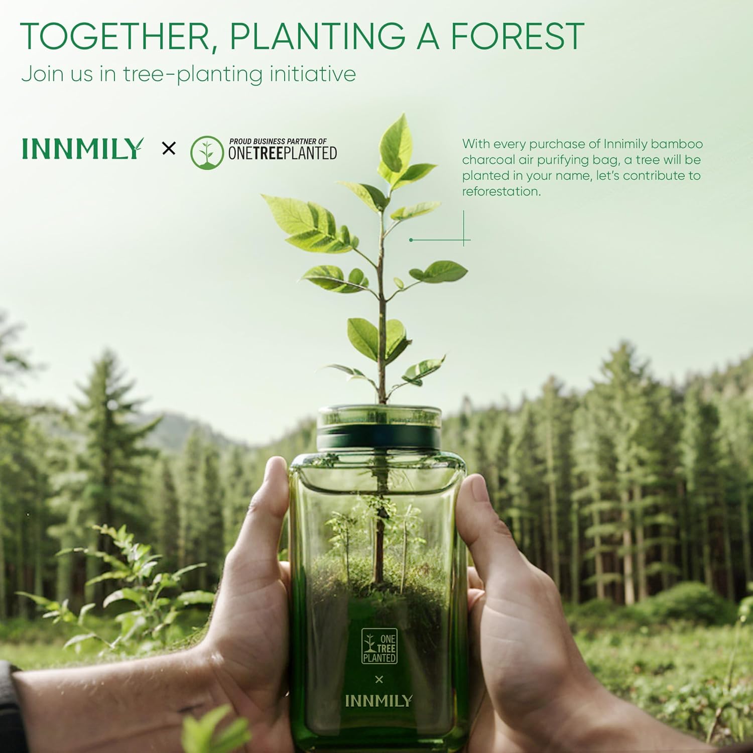 - TOGETHER, PLANTING A FOREST - We invite you to join us in tree-planting initiative - every purchase of Innimily bamboo charcoal air purifying bag, a tree will be planted in your name, let’s contribute to reforestation and environmental responsibility. Natural solution that not only captures odors but also contributes to sustainability. Innmily bring nature and fresh air, we offer no question asked money-back guarantee if you were not satisfied with the moisture absorber and odor eliminator