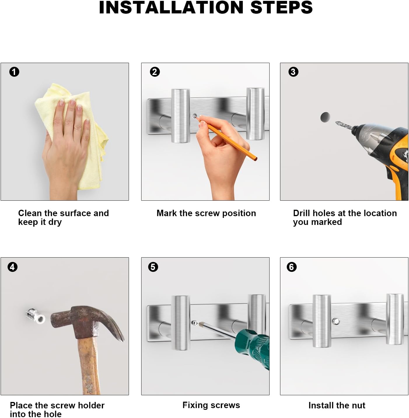 - ANTI SLIP AND SCRATCH RESISTANT:Each hook features thoughtful protrusions to prevent clothes and hats from slipping, and its smooth surface won't scratch towels, jackets, or coats