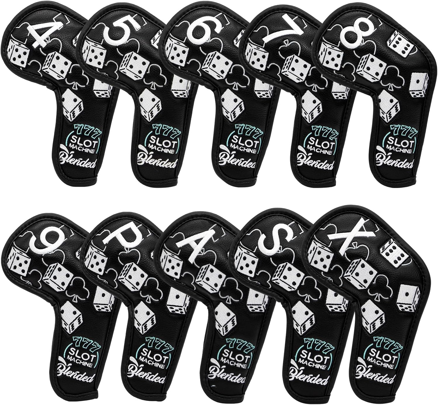 Golf Iron Covers Lucky 777 Golf Iron Headcover 10pcs Synthetic Leather Golf Clubs Iron Covers for Golf Clubs Head Covers for Irons with Magic Tape Fit All Brands